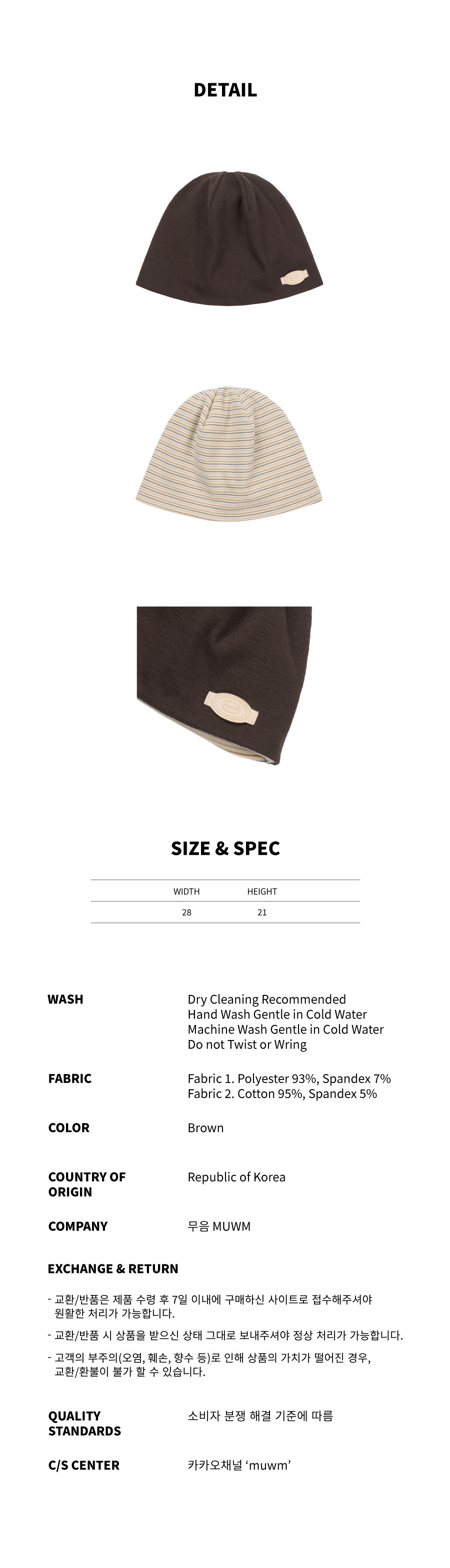 리버시블 플립 비니 Reversible Flip Beanie (Brown)