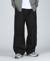 코튼 나일론 카고 벌룬 투턱 스트링 팬츠_블랙