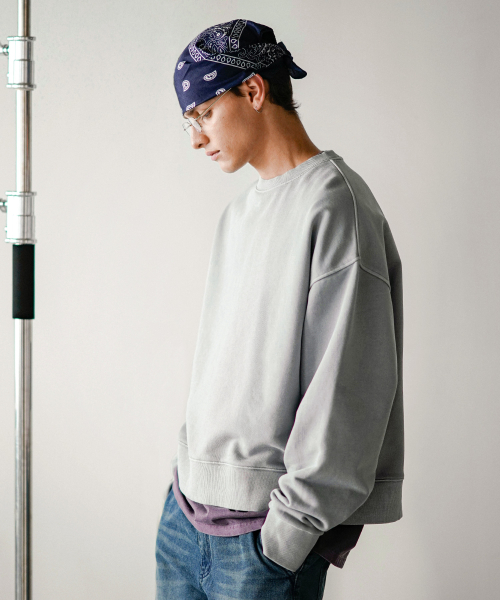 에즈 크롭 피그먼트 맨투맨 애쉬그레이 KJMT6899