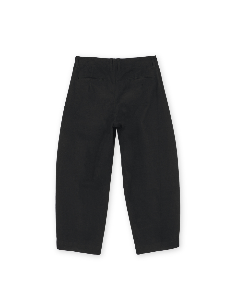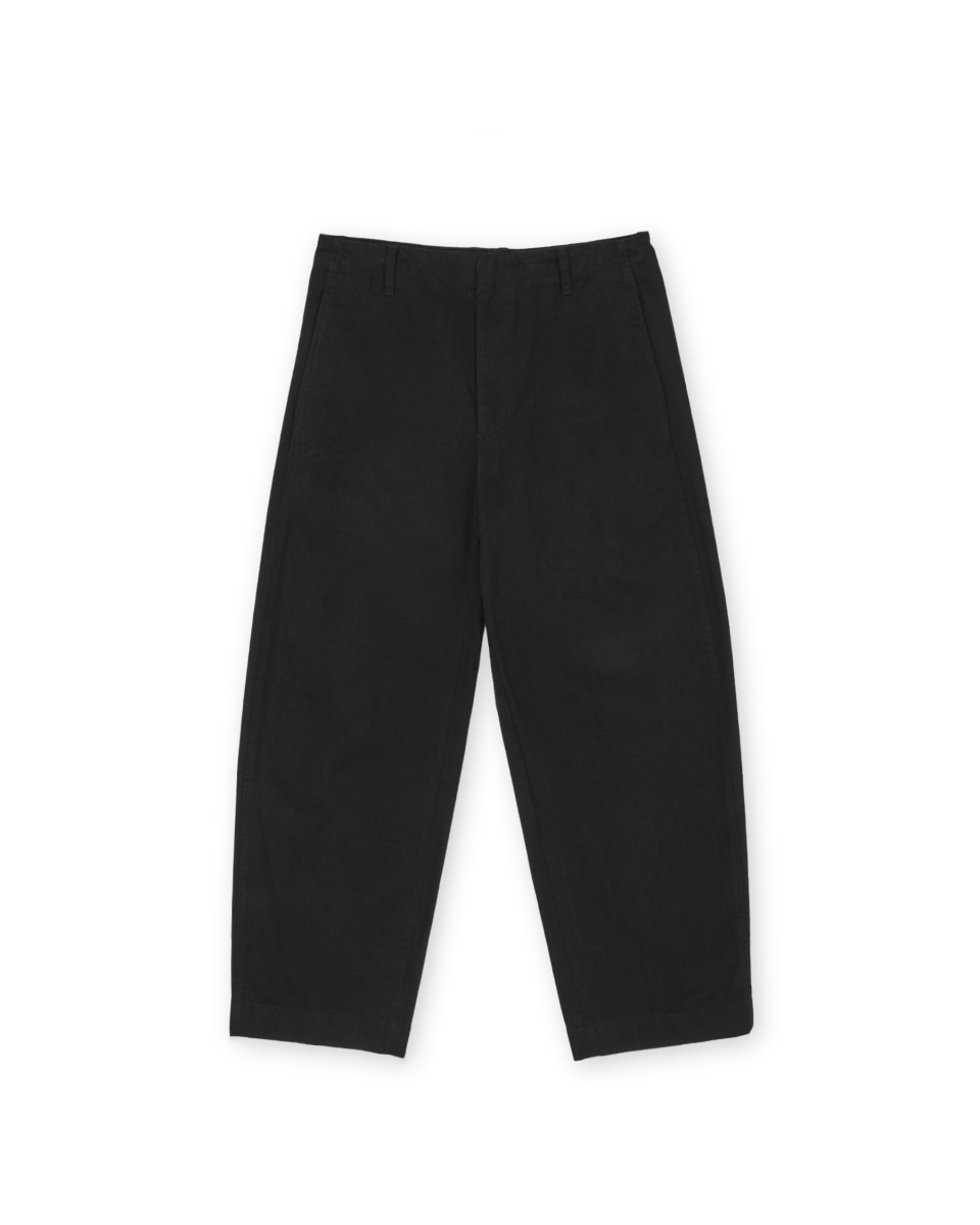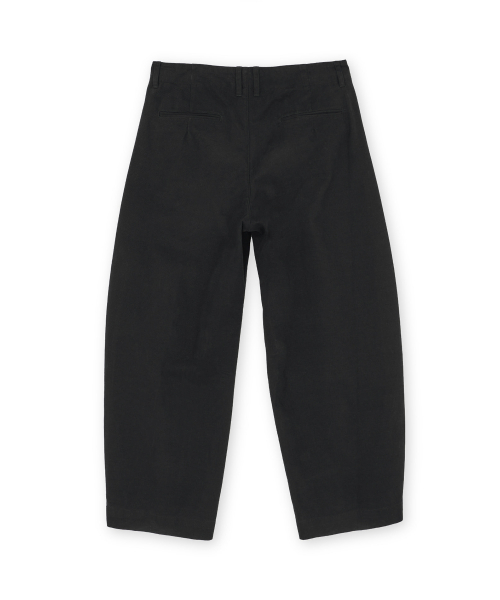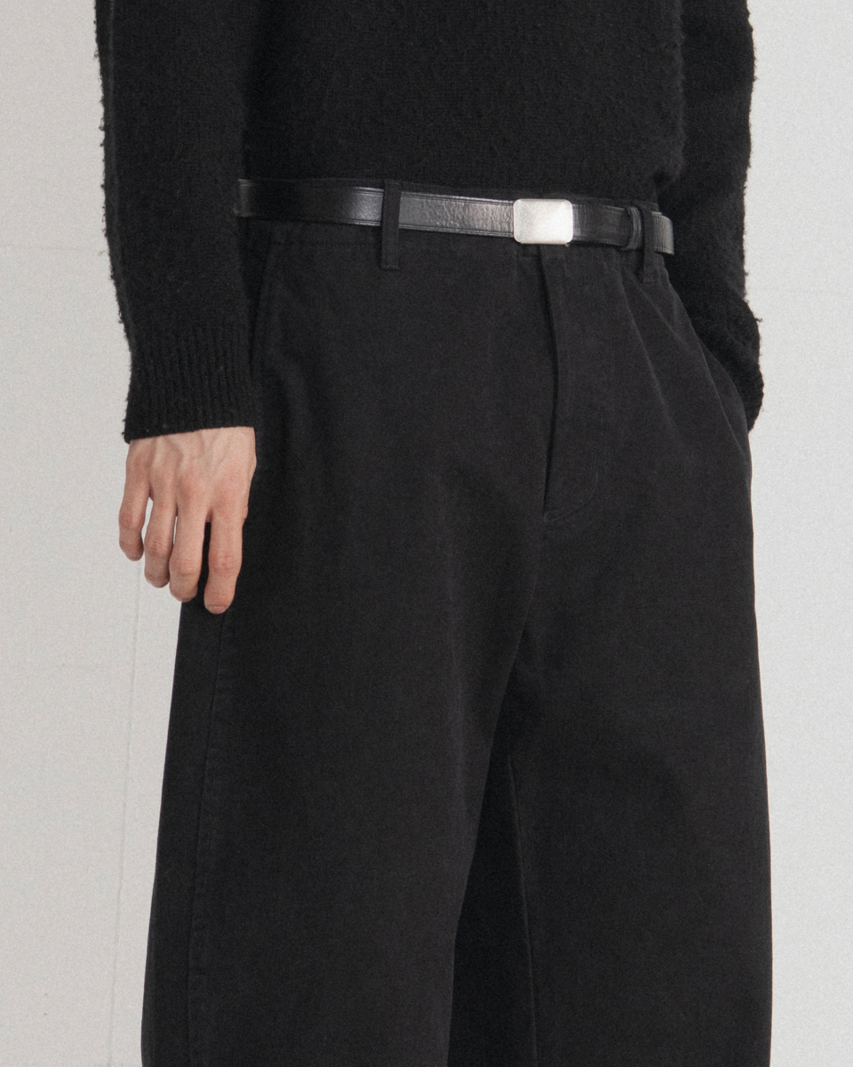 허벅지 라인에서 밑단까지 자연스럽게 이어지는 곡선 실루엣이 특징인 워시드 필드 팬츠입니다.