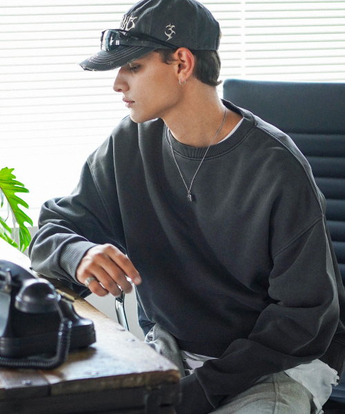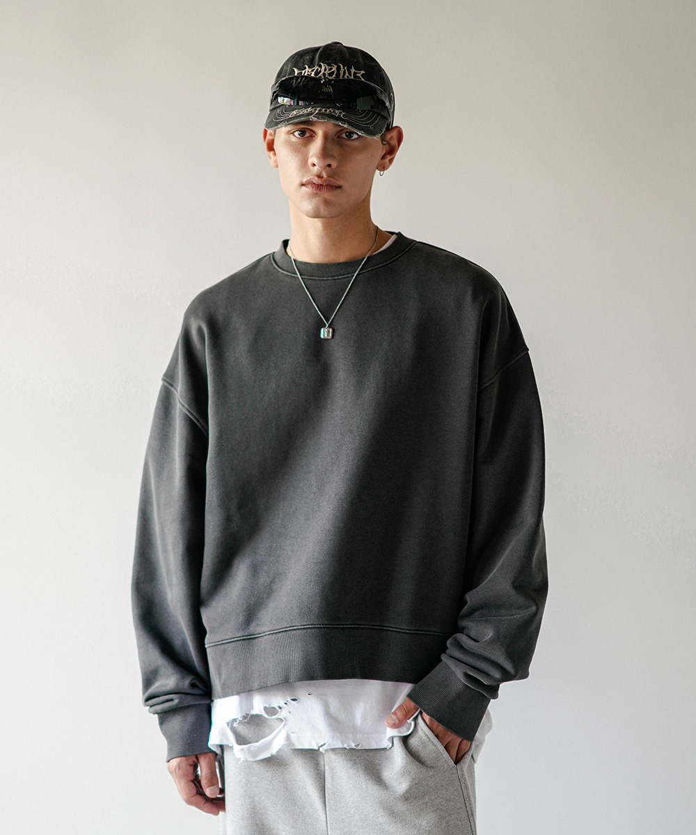 에즈 크롭 피그먼트 맨투맨 다크그레이 KJMT6899