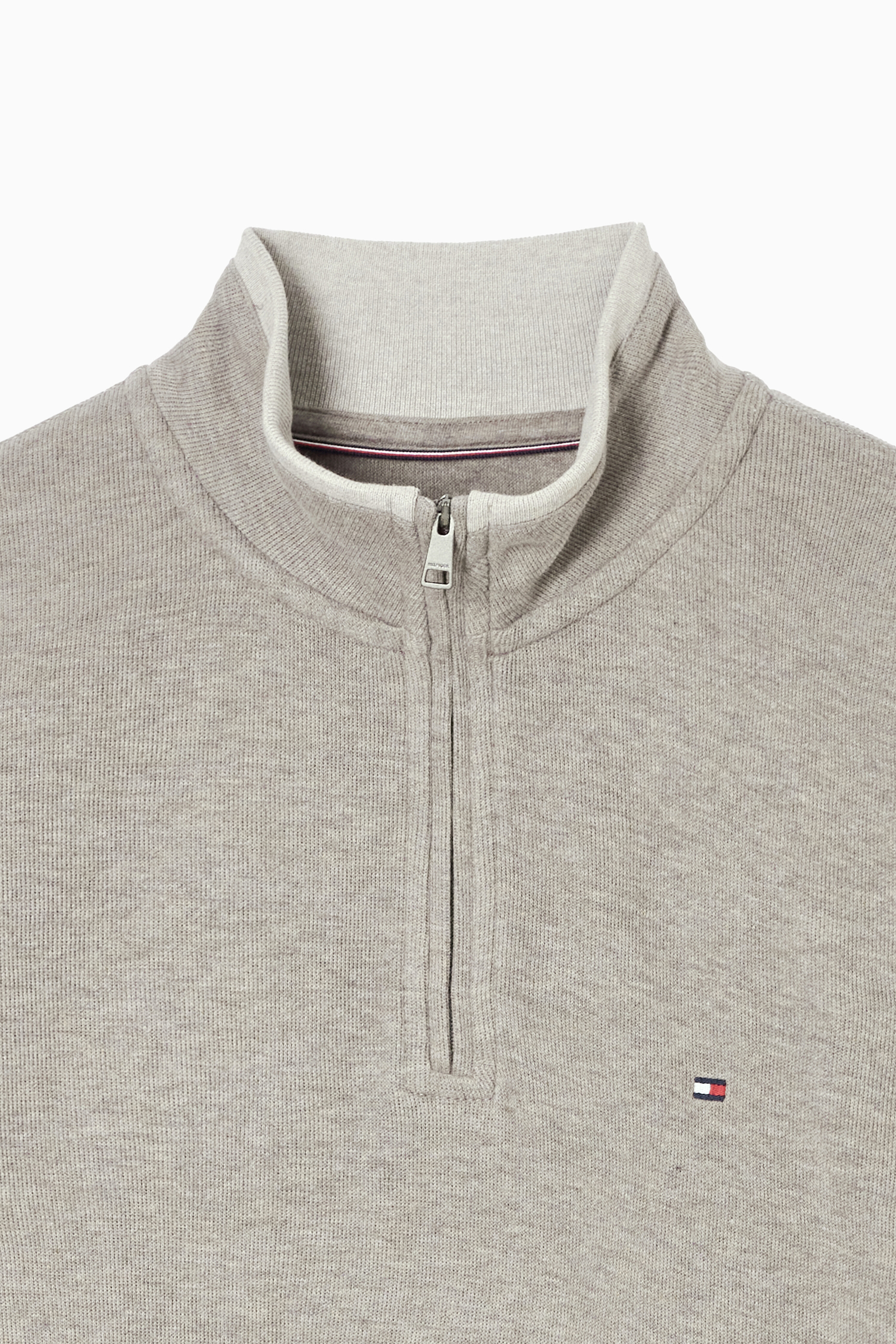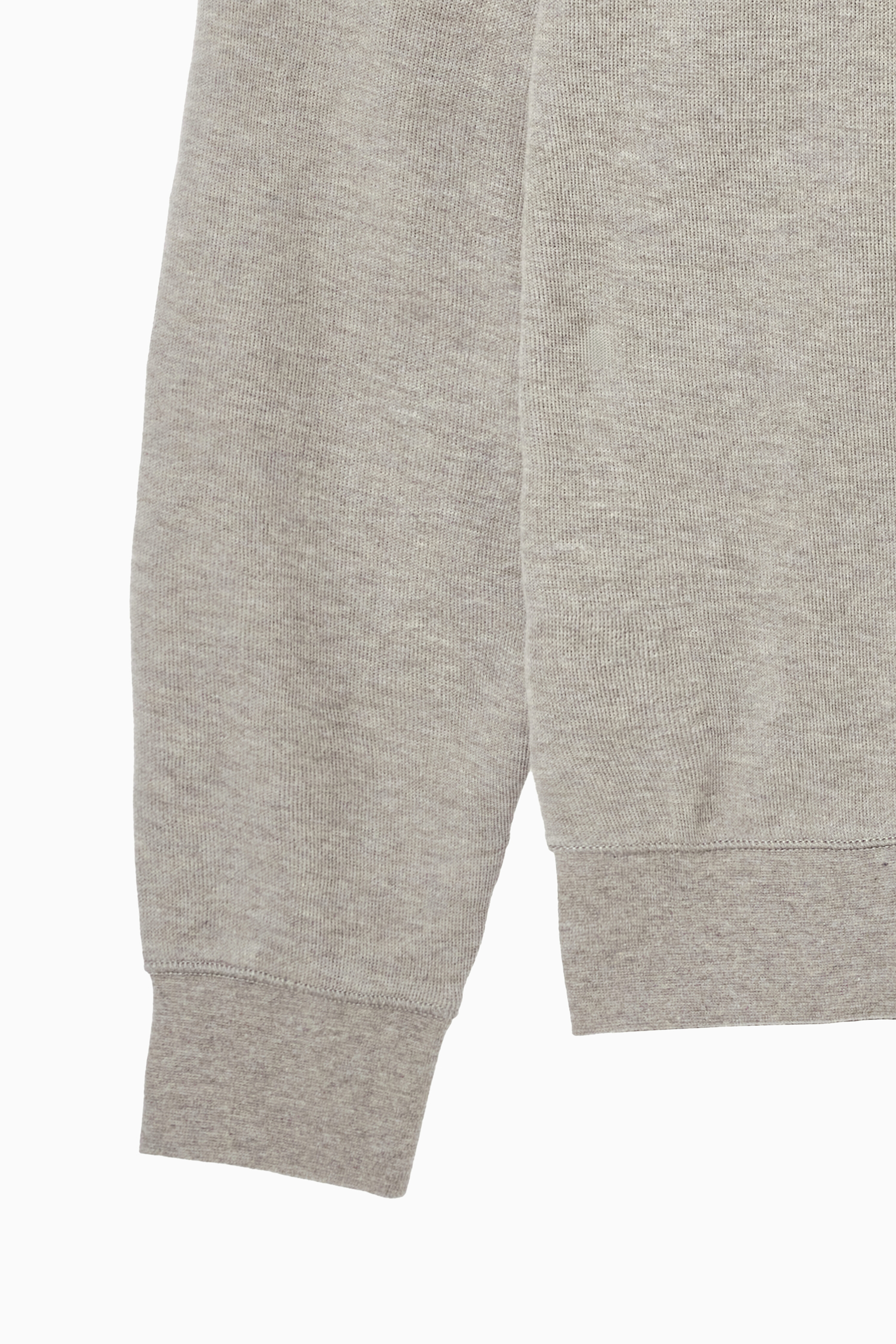 스웨터 질감의 프렌치 립 소재로 제작된 하프 집업입니다.