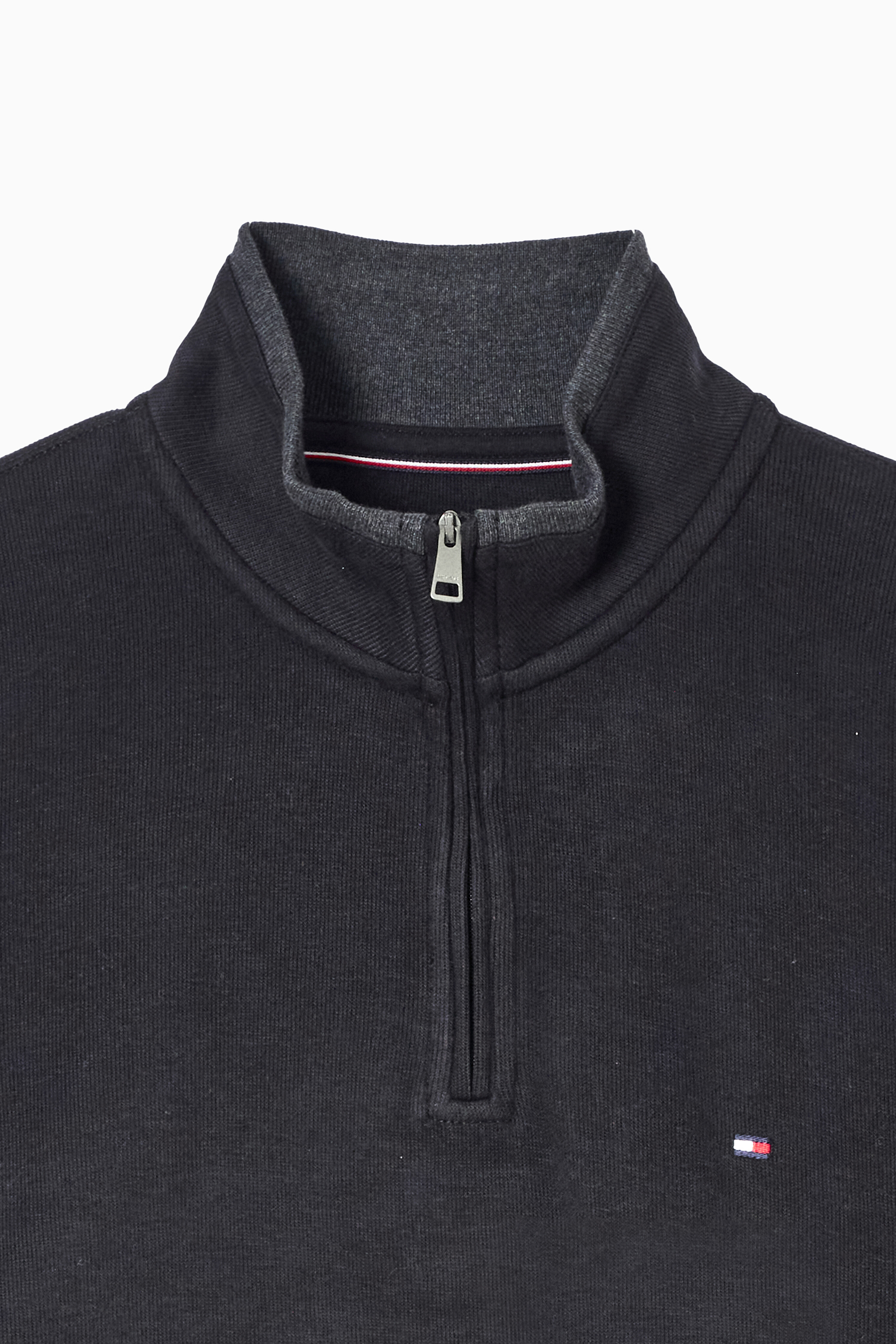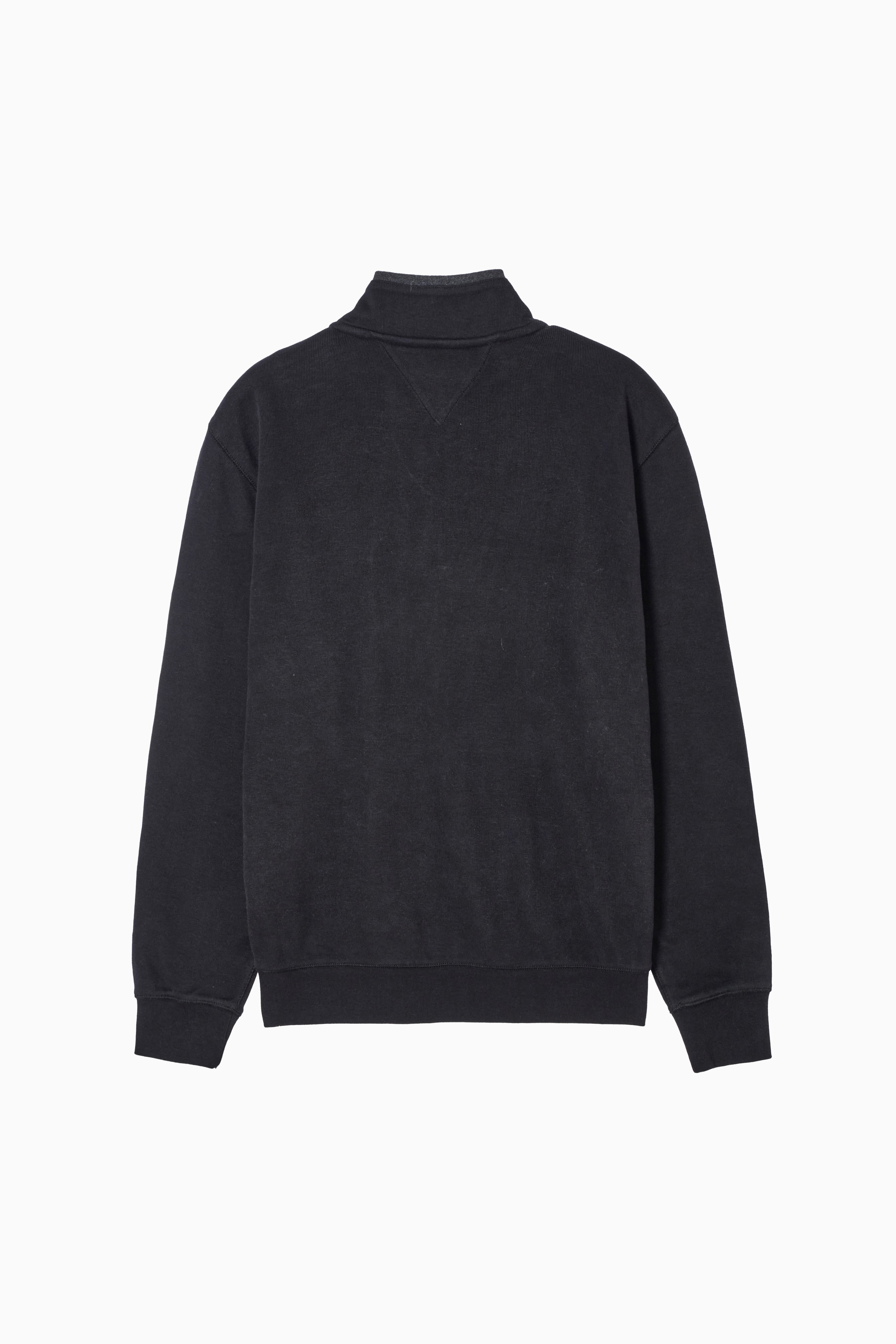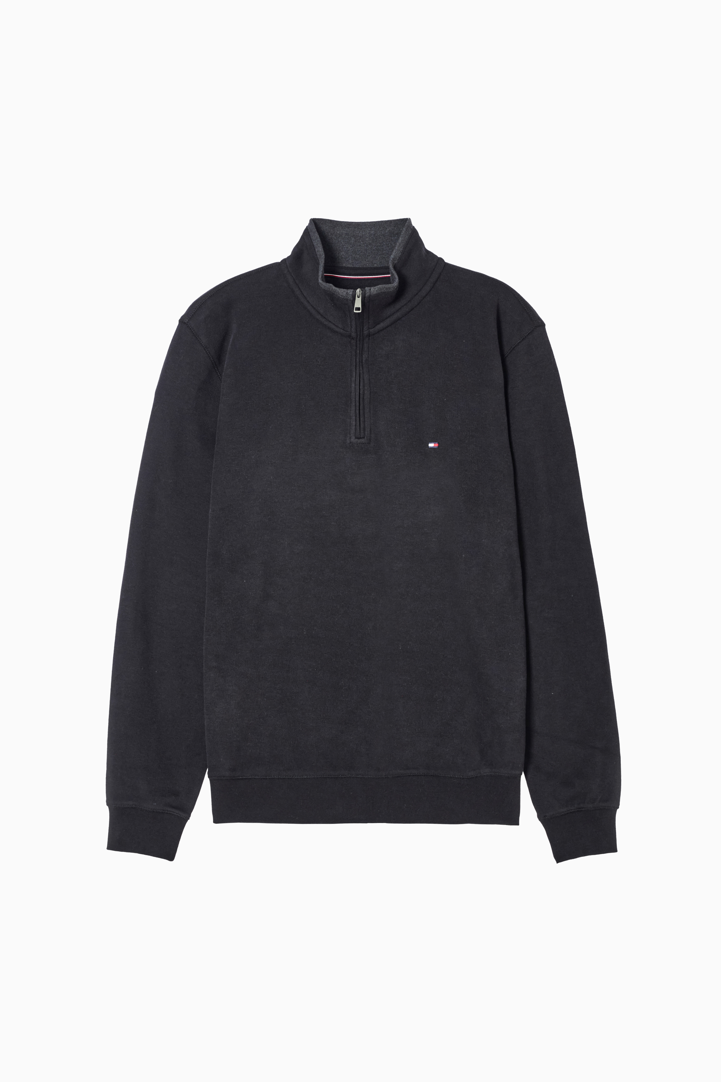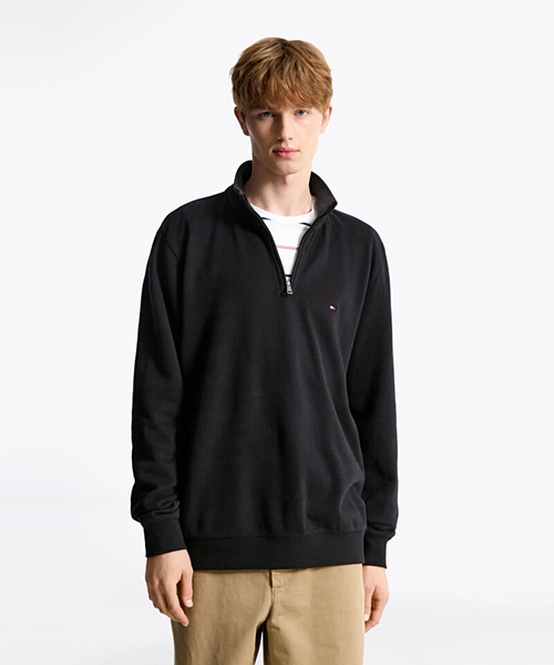 스웨터 질감의 프렌치 립 소재로 제작된 하프 집업입니다.