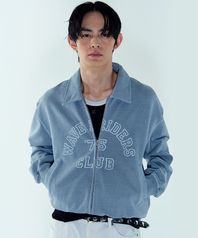 WAVE RIDERS PIGMENT WASHED COLLAR ZIP-UP - BLUE GRAY