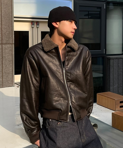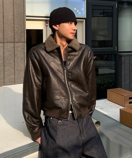 빈티지 무스탕 봄버 브라운