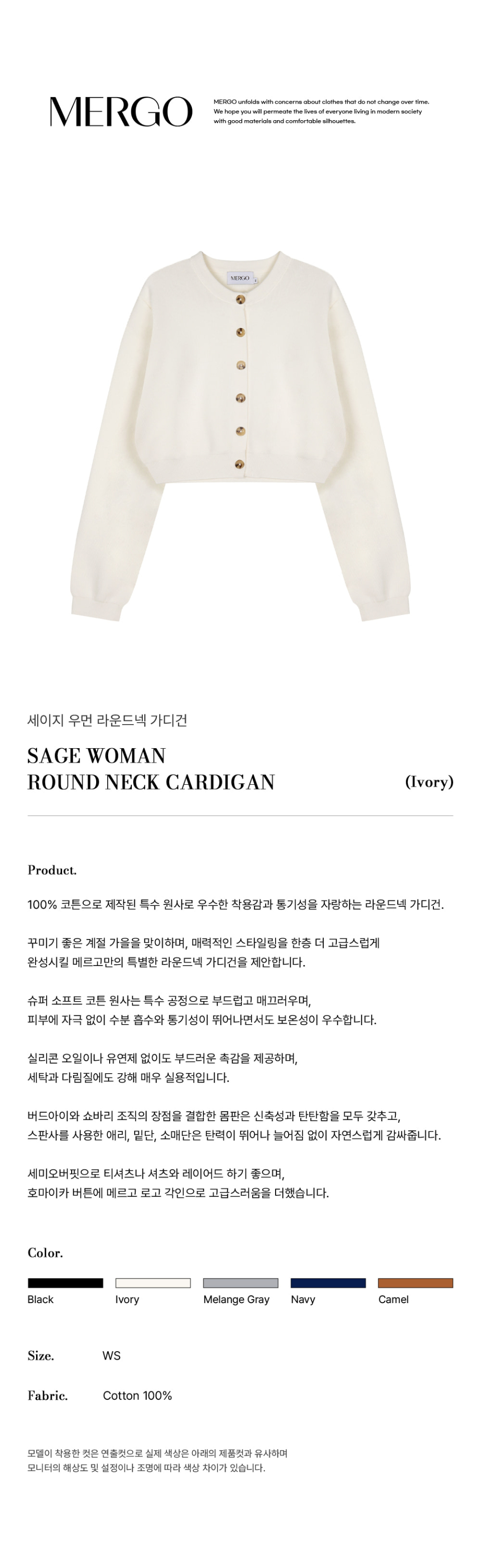 세이지 우먼 라운드넥 가디건 [아이보리]