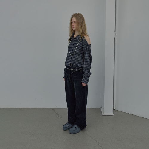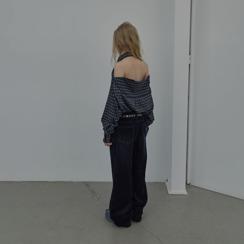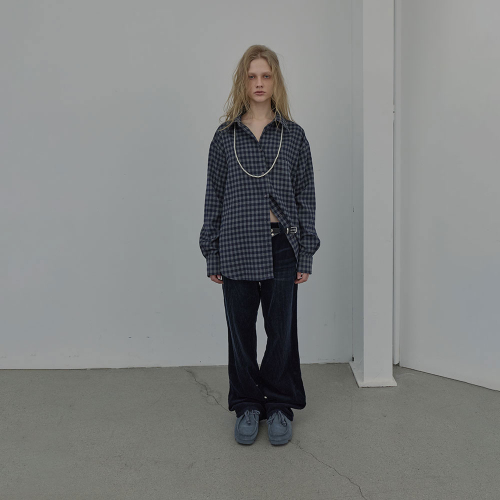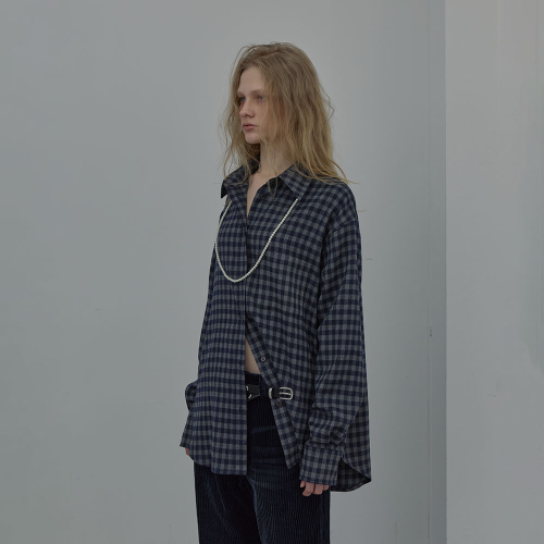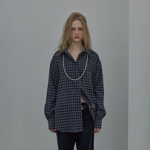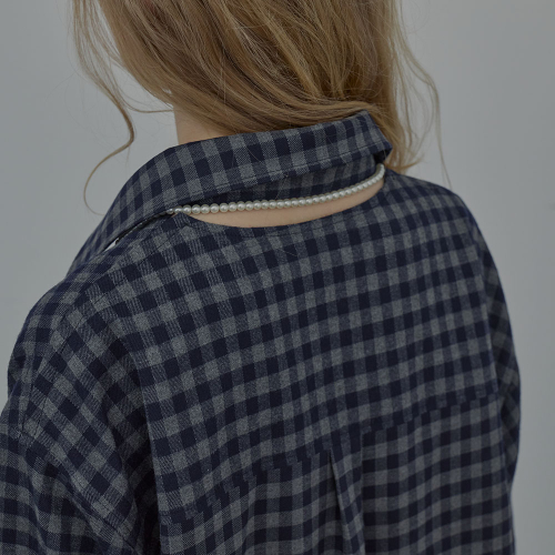 CHECKED HALTERNECK SHIRT (NAVY)