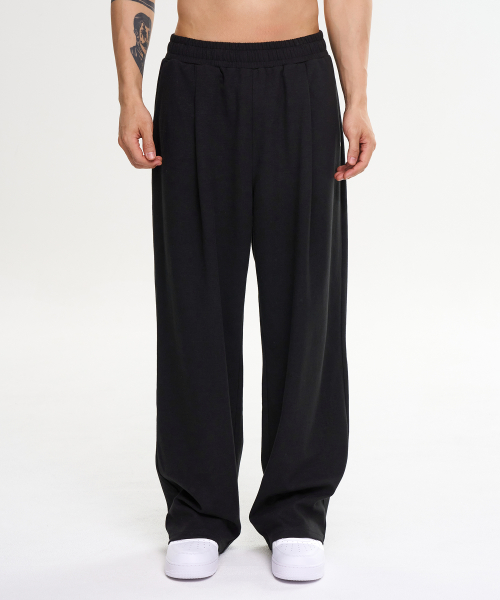 원턱 스웨트 팬츠 운동복 트레이닝복 와이드 밴딩 스웻 바지 M 블랙