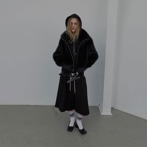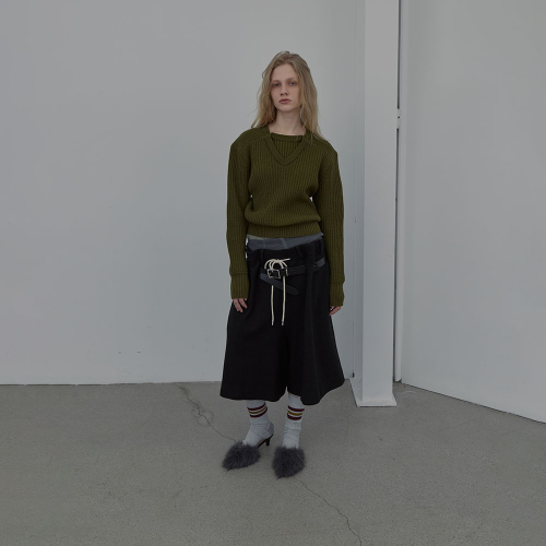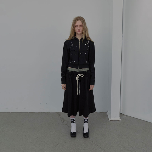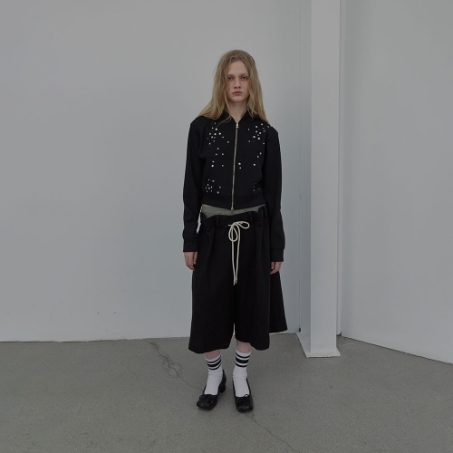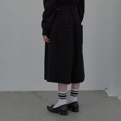 PLEATS DETAIL BERMUDA SHORTS (BLACK)
