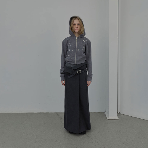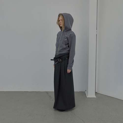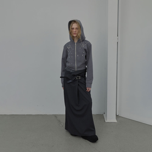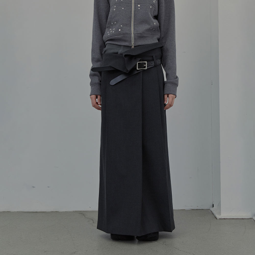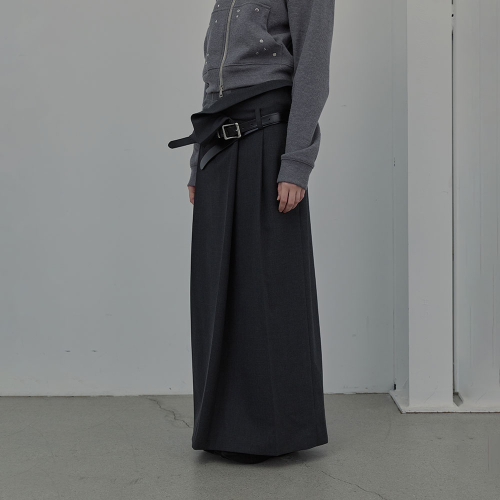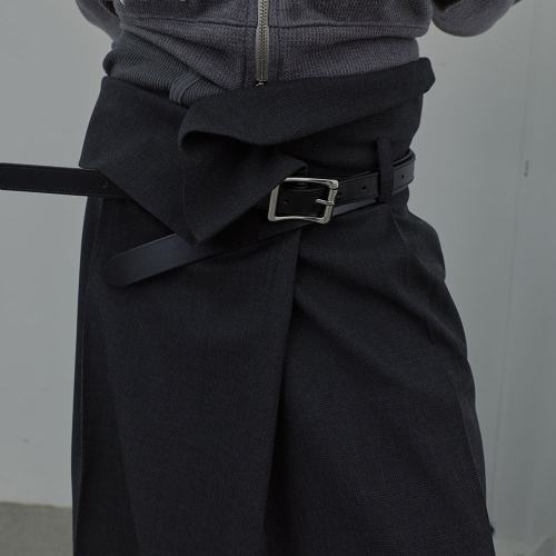 FOLD-OVER CHECK SKIRT (DARK GREY)