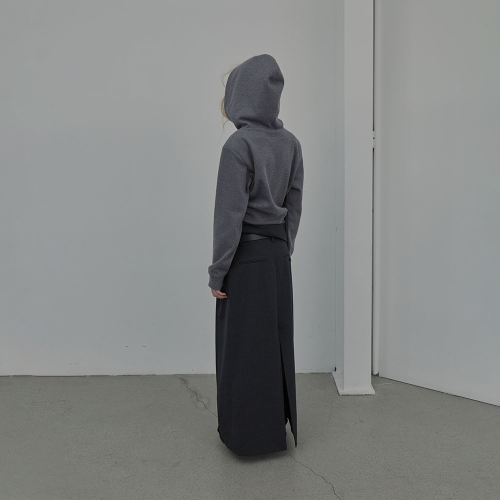 3/4 LAYERED CONTRAST HOODIE (DEEP MELANGE GRAY)