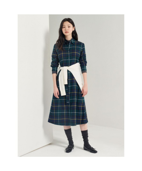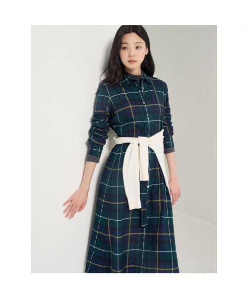 부드러운 촉감의 면 100% 소재로 제작한 체크 원피스입니다. 표면에 약간의 기모가 있어 따뜻한 느낌의 외관을 선사합니다. 단정한 셔츠 칼라와 밑단으로 갈수록 퍼지는 핏 앤 플레어 실루엣에 자전거 자수 디테일을 더해 클래식한 느낌을 주었습니다. 시그니처 헤릿 체크 패턴으로 디자인되어 단독 착장만으로도 멋스러운 아이템입니다.