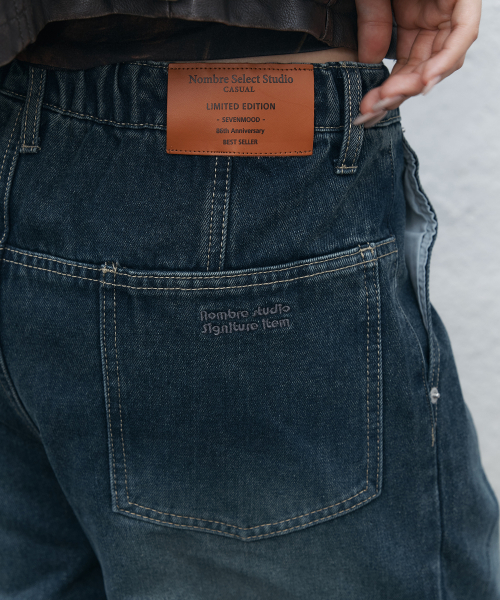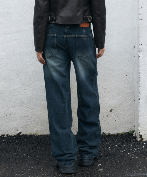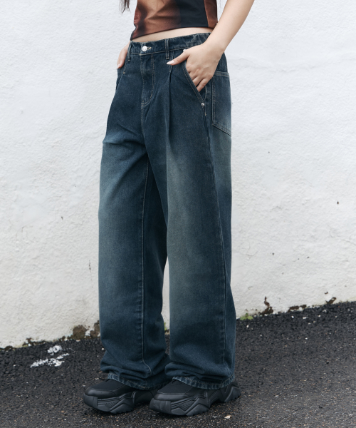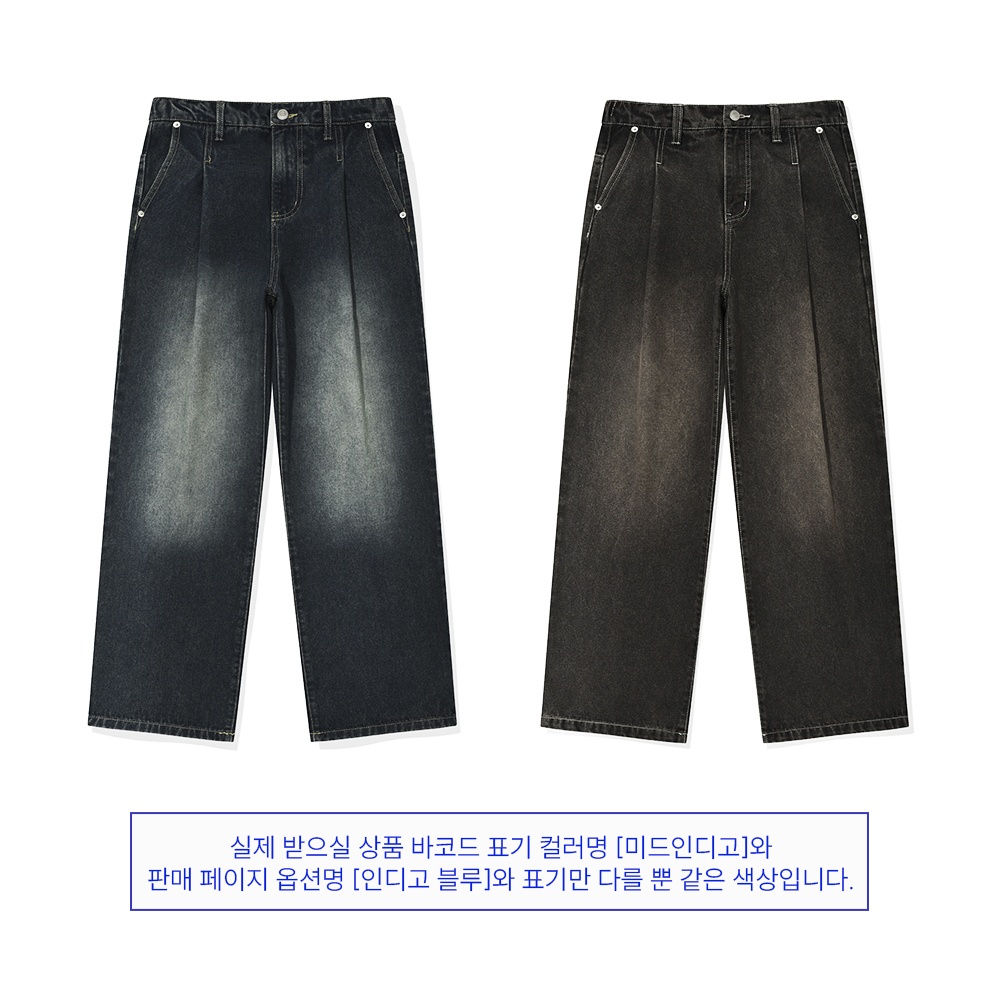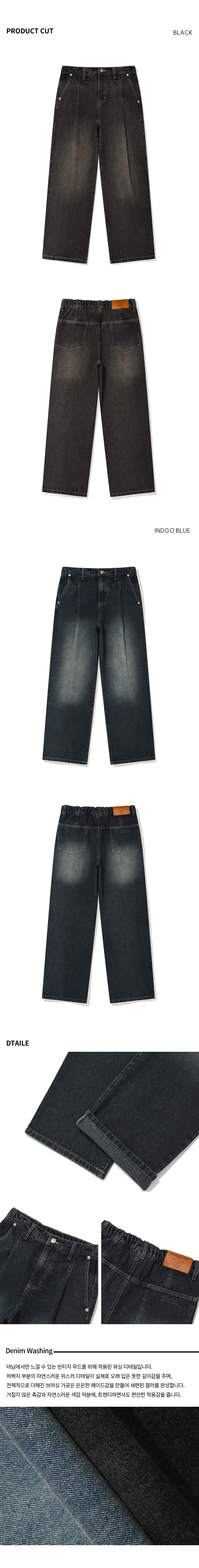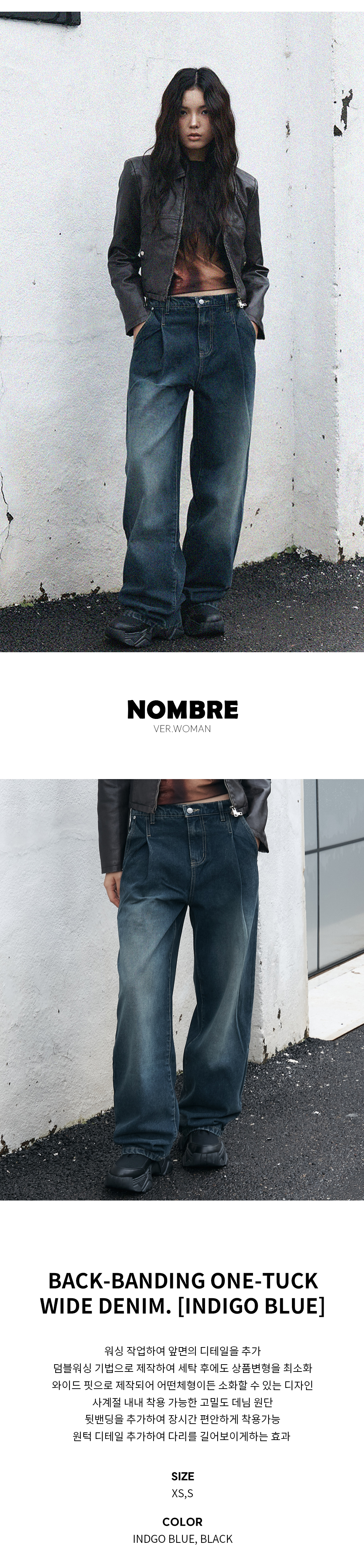 [우먼] 뒷밴딩 원턱 와이드 데님 [인디고 블루]
