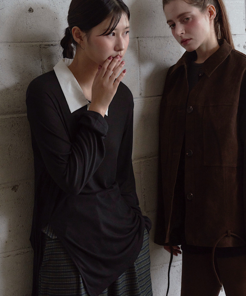 단독으로 착용했을 때는 소재의 부드러움과 미니멀한 디테일이 돋보이며,