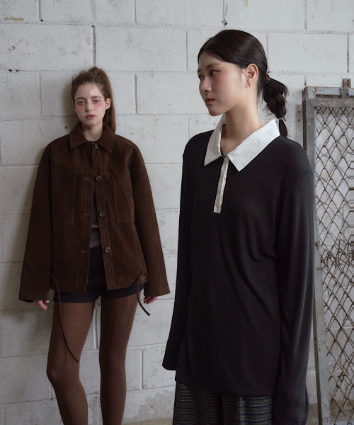 카라 부분에는 의도적으로 광택을 배제한 매트한 텍스처의 원단을 믹스하여,