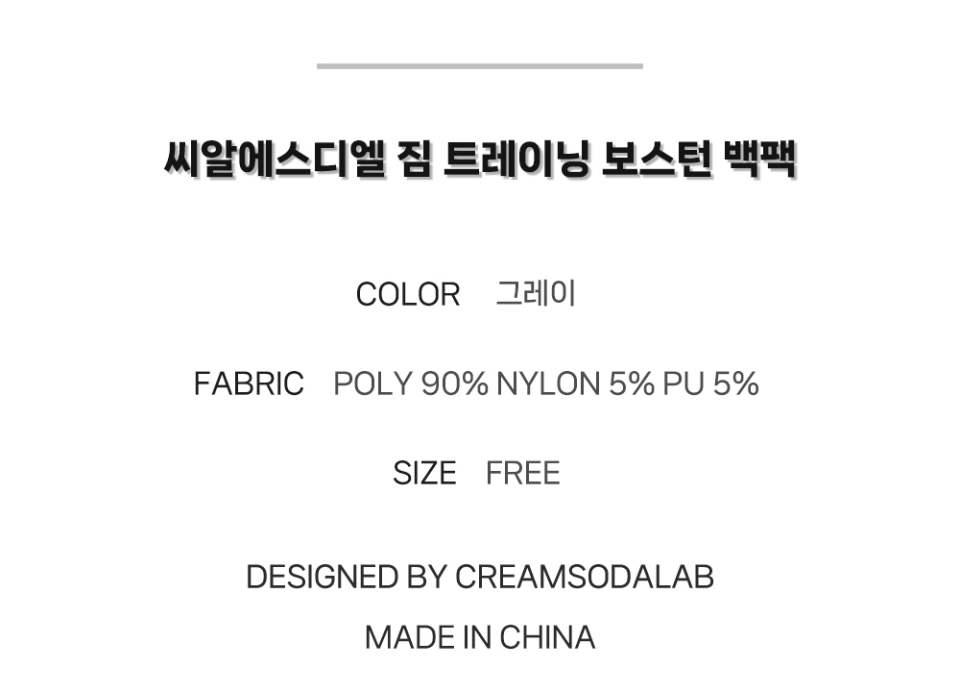 씨알에스디엘 짐 트레이닝 보스턴 백팩 그레이