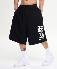 자이언트핏 와이드 버뮤다 스웨트 팬츠 빅로고 헬스 짐웨어 운동복 반바지 M 블랙