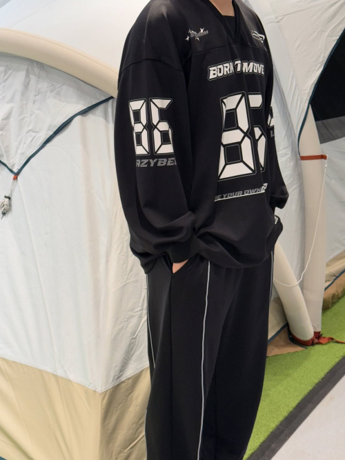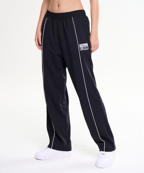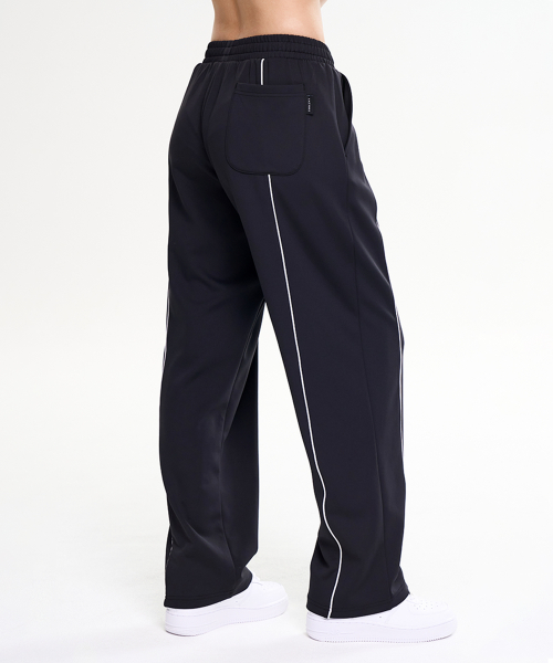 자이언트핏 라인 트랙 팬츠 와이드 짐웨어 트레이닝 운동복 밴딩 바지 W 블랙