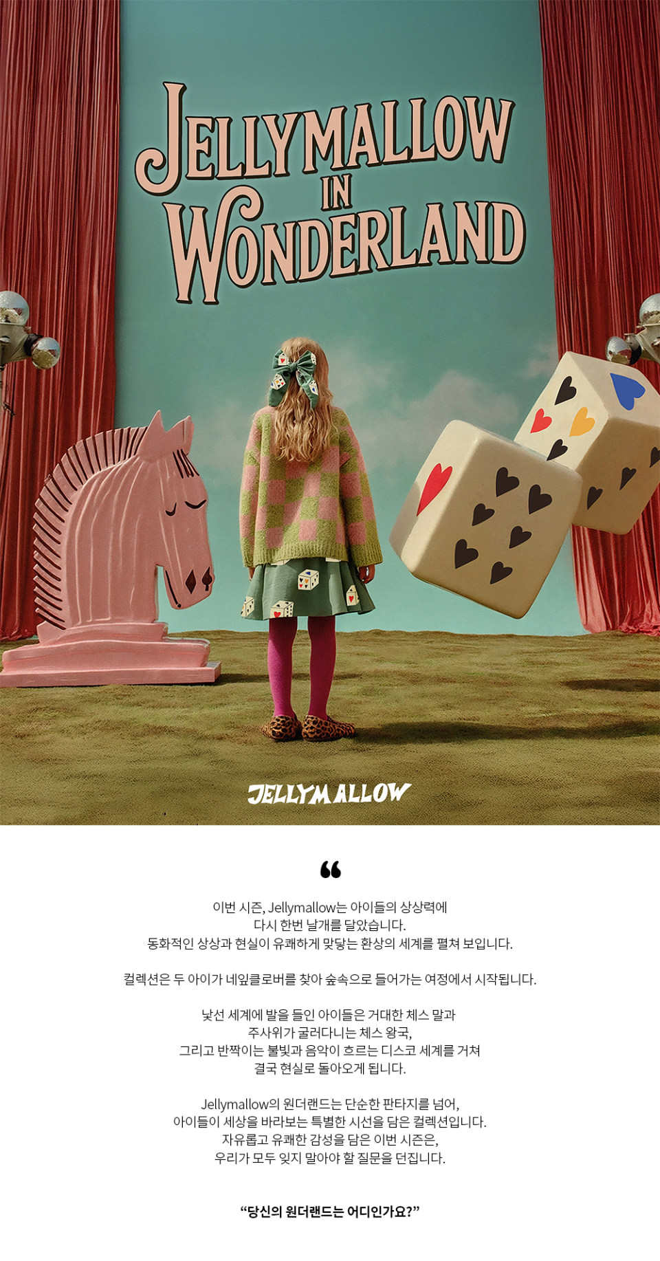 젤리멜로(JELLYMALLOW)는 흥미로운 디테일과 유니크, 위트 있는 디자인으로 아이들에게 편안함과 행복함을 가져다주는 브랜드입니다. 젤리멜로는 전 세계 어린이들의 풍부함 과 무수한 상상력으로 성장하고 있습니다. 앞으로도 우리는 아이들의 기쁨과 창의성, 특별한 영감을 다른 아이들과의 공유할 수 있기를 기대합니다. 우리는 단지 패션을 넘어 매 순간 당신의 작은 햇살과 같은 특별한 순간의 일부가 될 것입니다.
