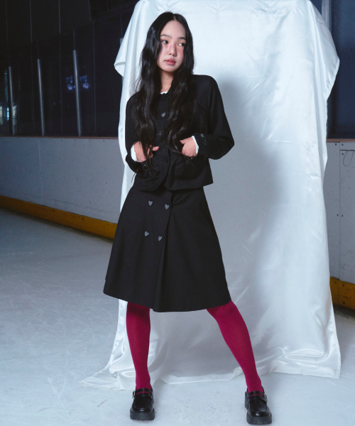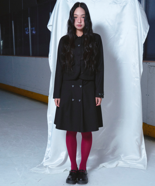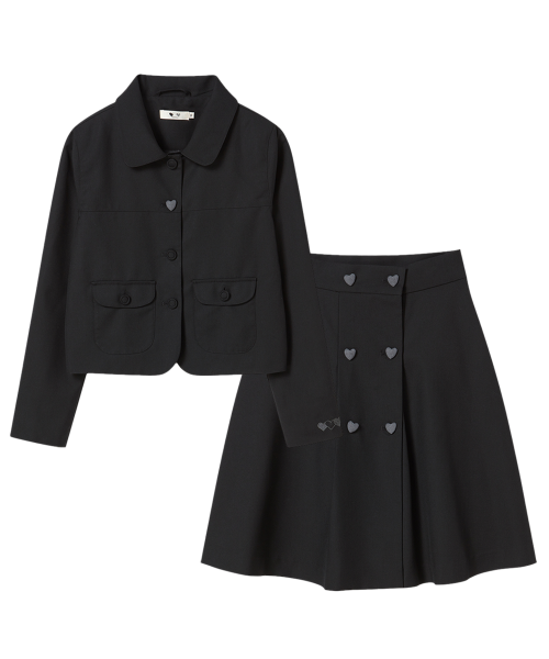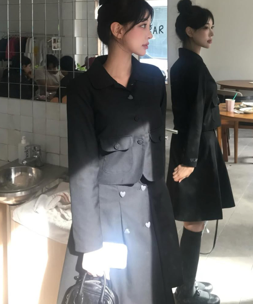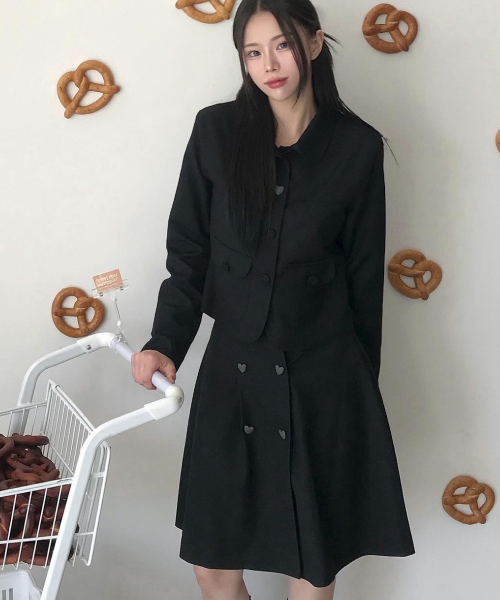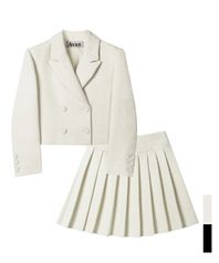 [SET] Daphne Tweed Double Button Crop Jacket & Pleated Skirt - 2COL
