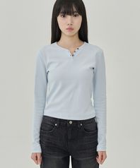 W 라운드 넥 버튼 티셔츠 (BABY BLUE)