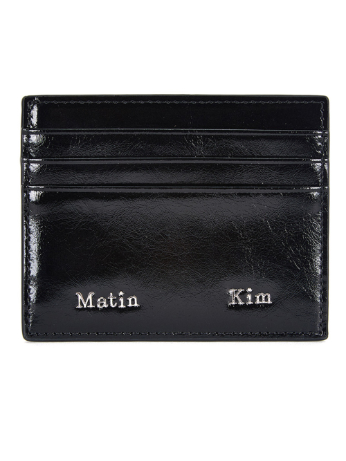 메탈 로고 레터링 장식이 들어간 모던한 디자인의 카드지갑