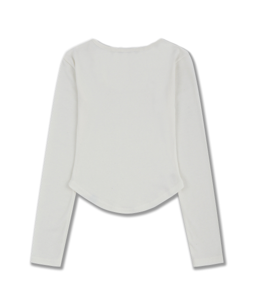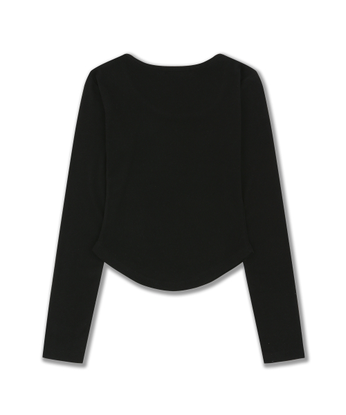 우먼즈 슬림 크롭 스퀘어 넥 버튼 티셔츠 [블랙]