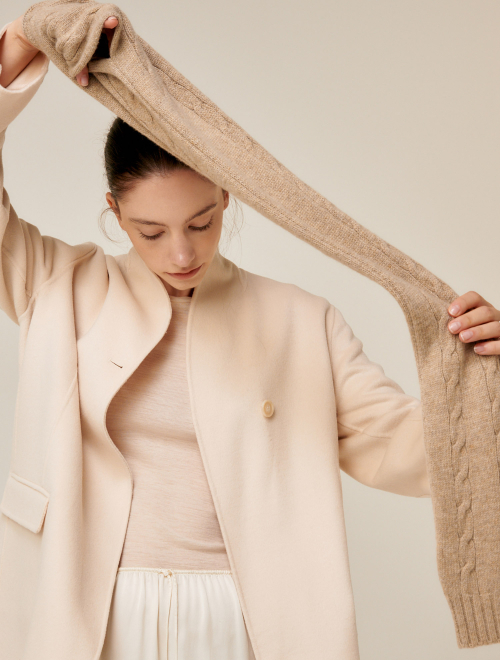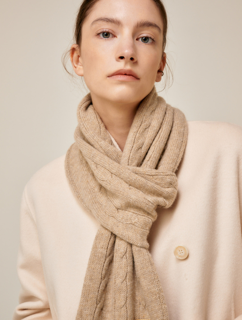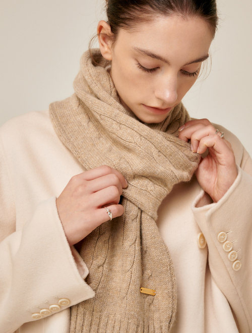 울 100% 트윌리 머플러 숏/롱 브라운베이지