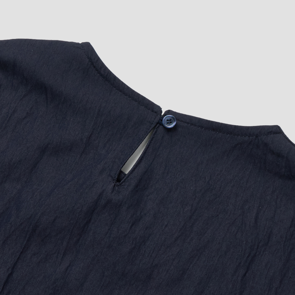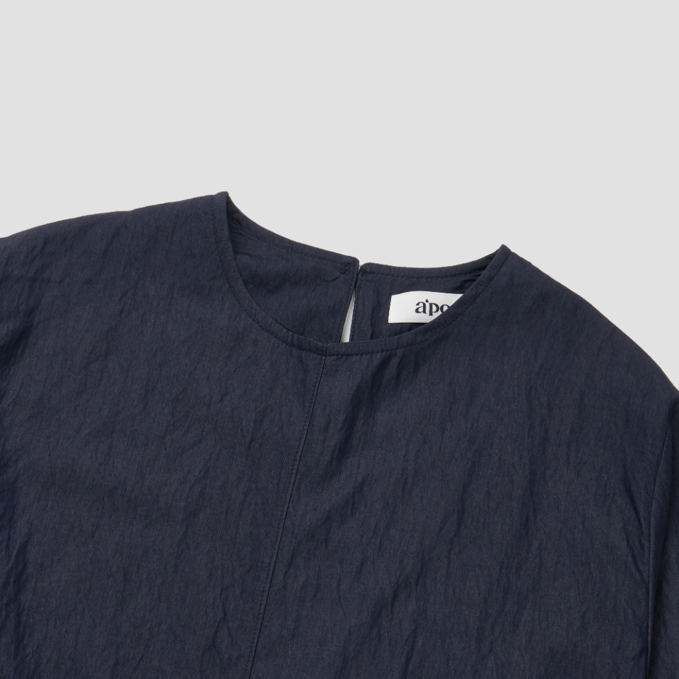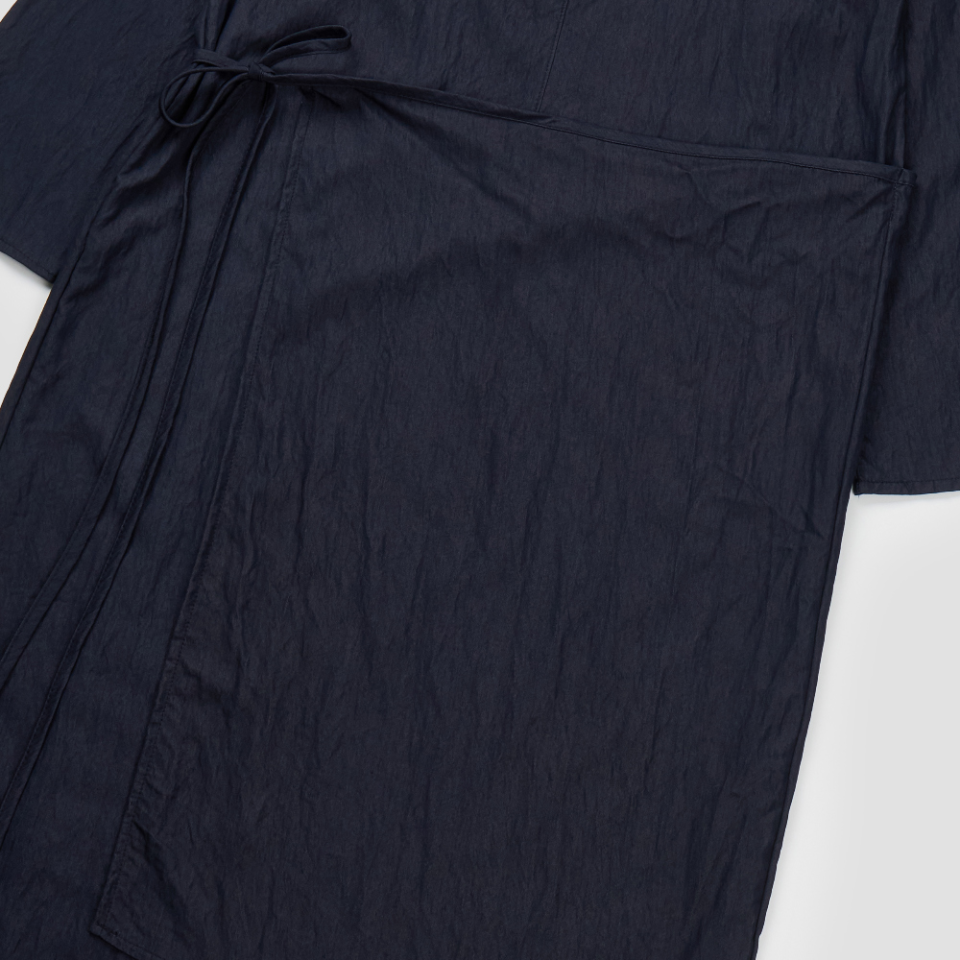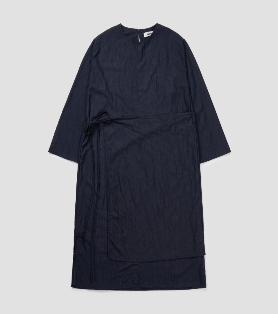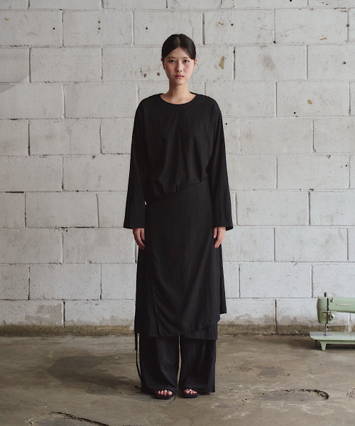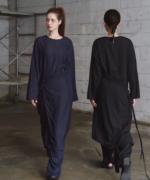 은은한 링클 텍스처가 살아 있는 조직감 있는 원단으로 제작된 롱 원피스입니다.