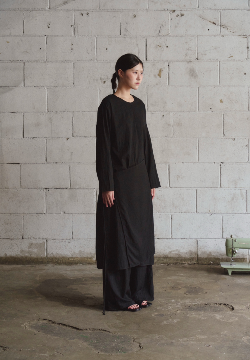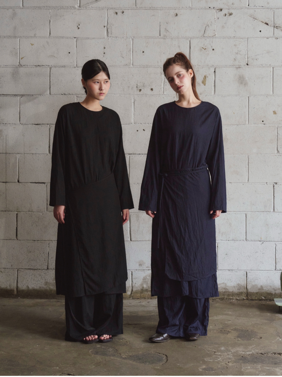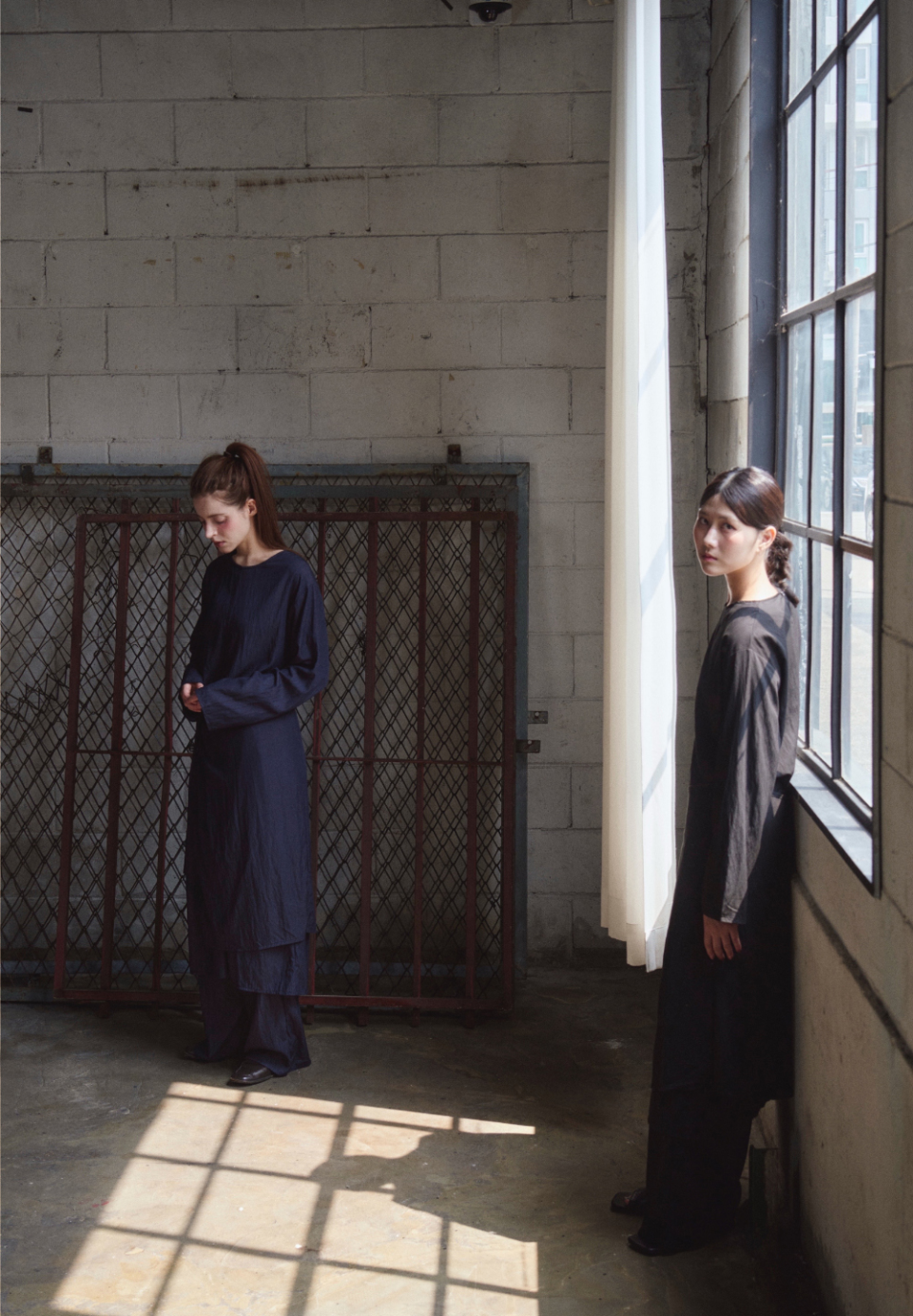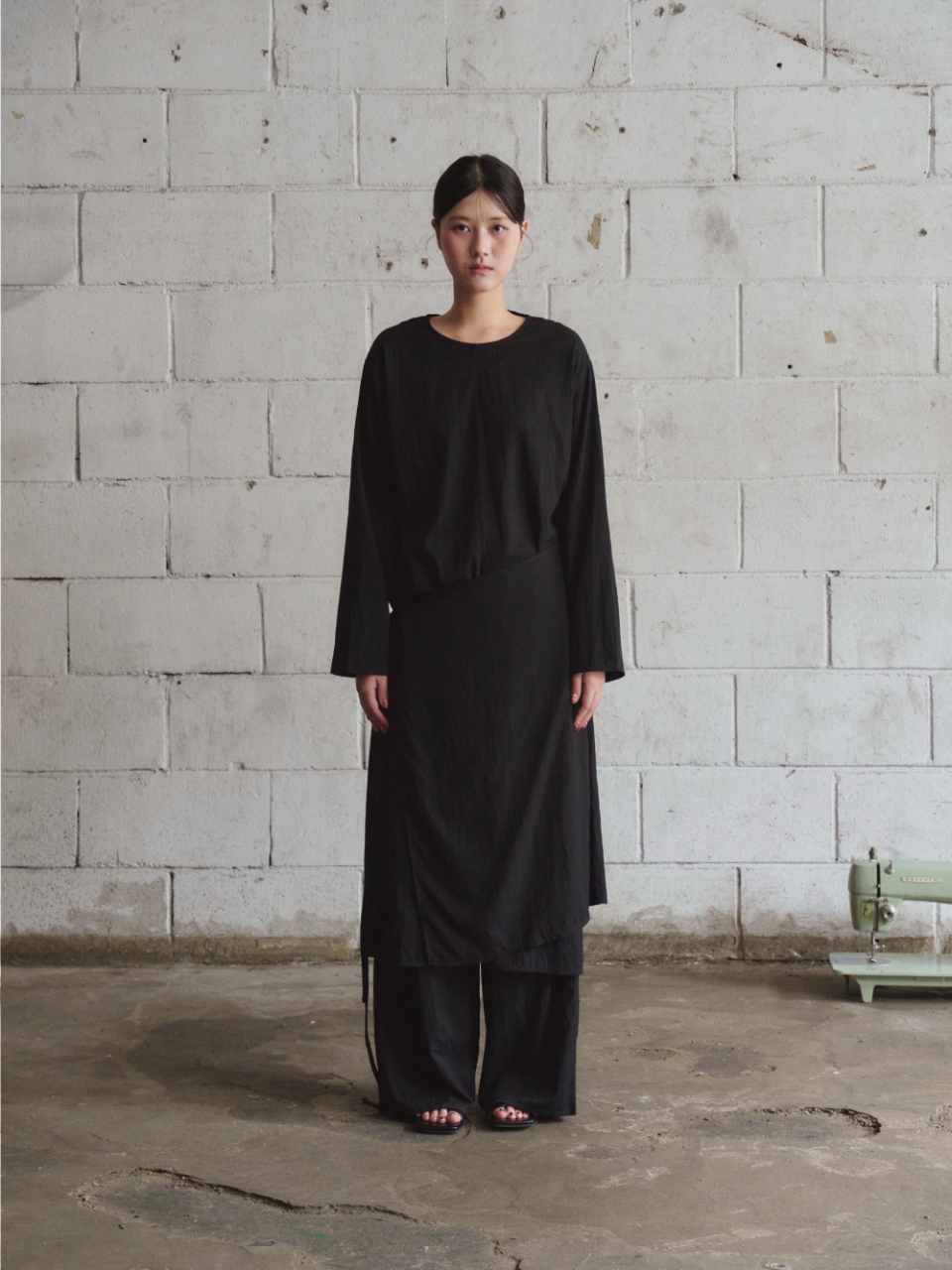 여유 있는 소매와 일자로 떨어지는 기장은 절제된 우아함을 담아내며,