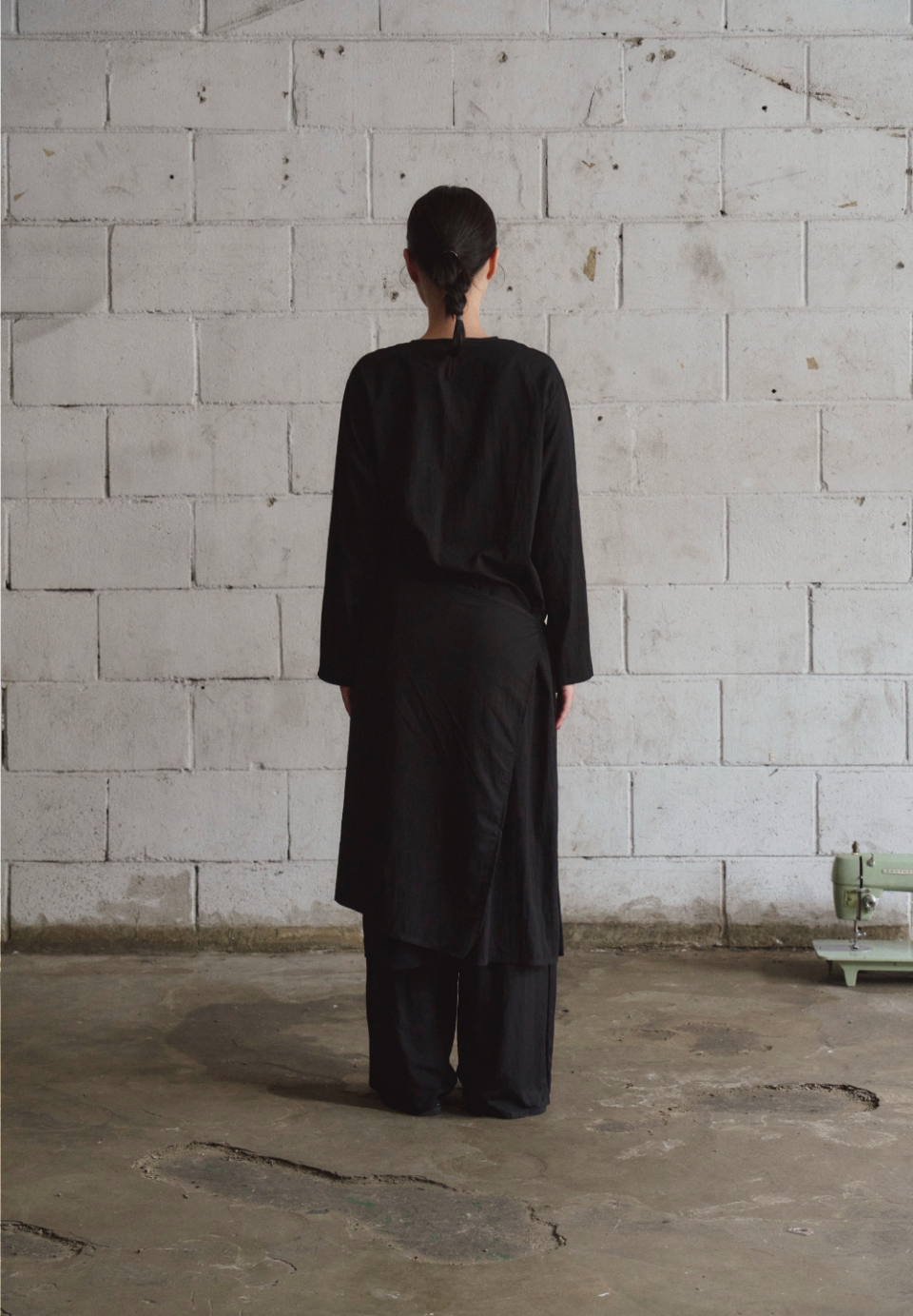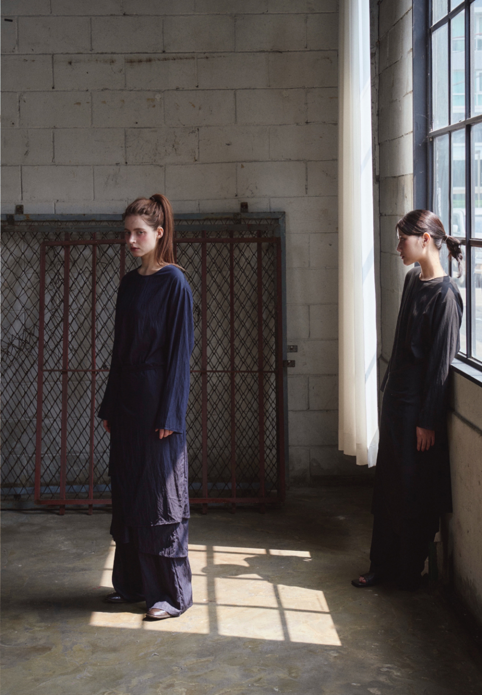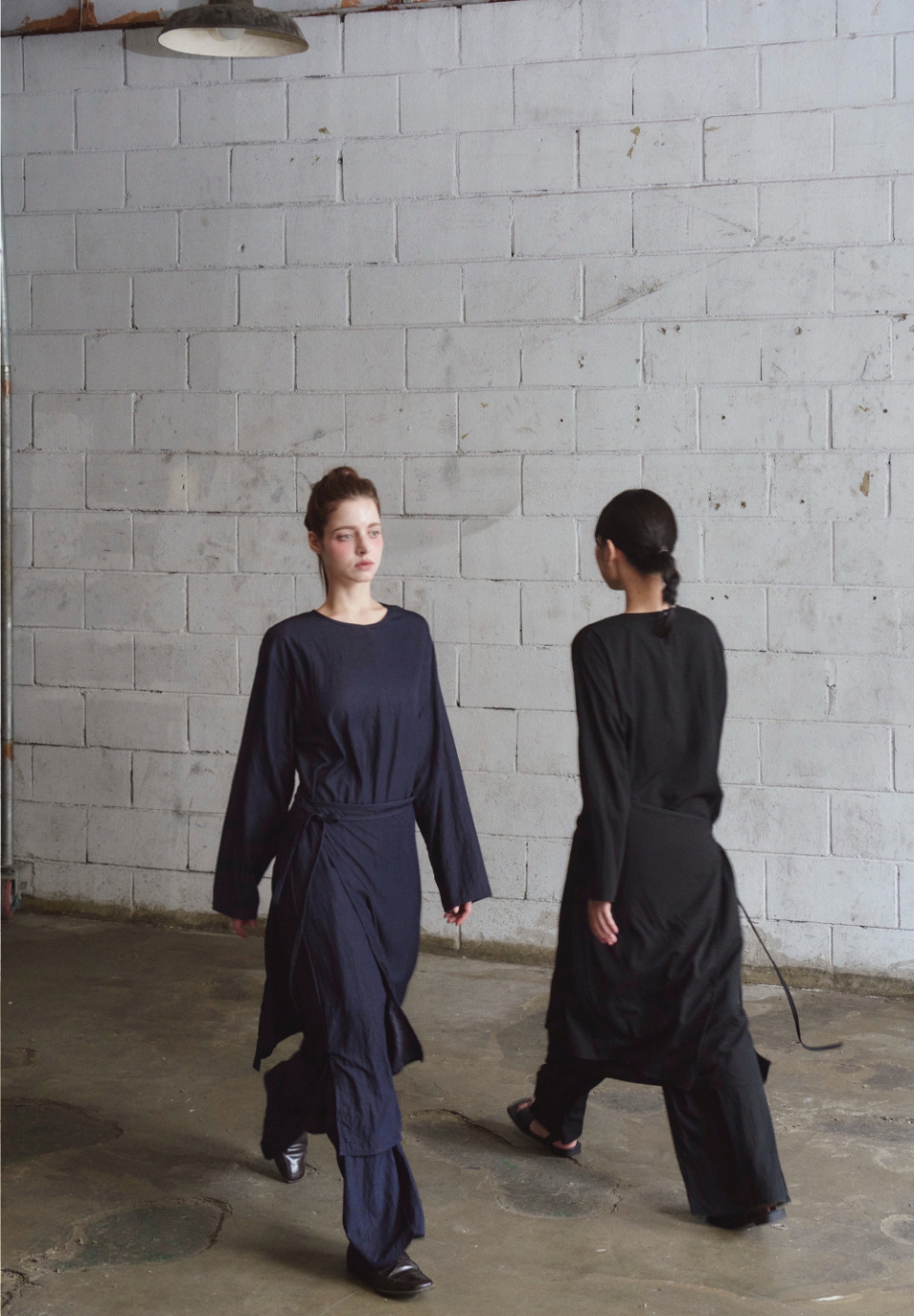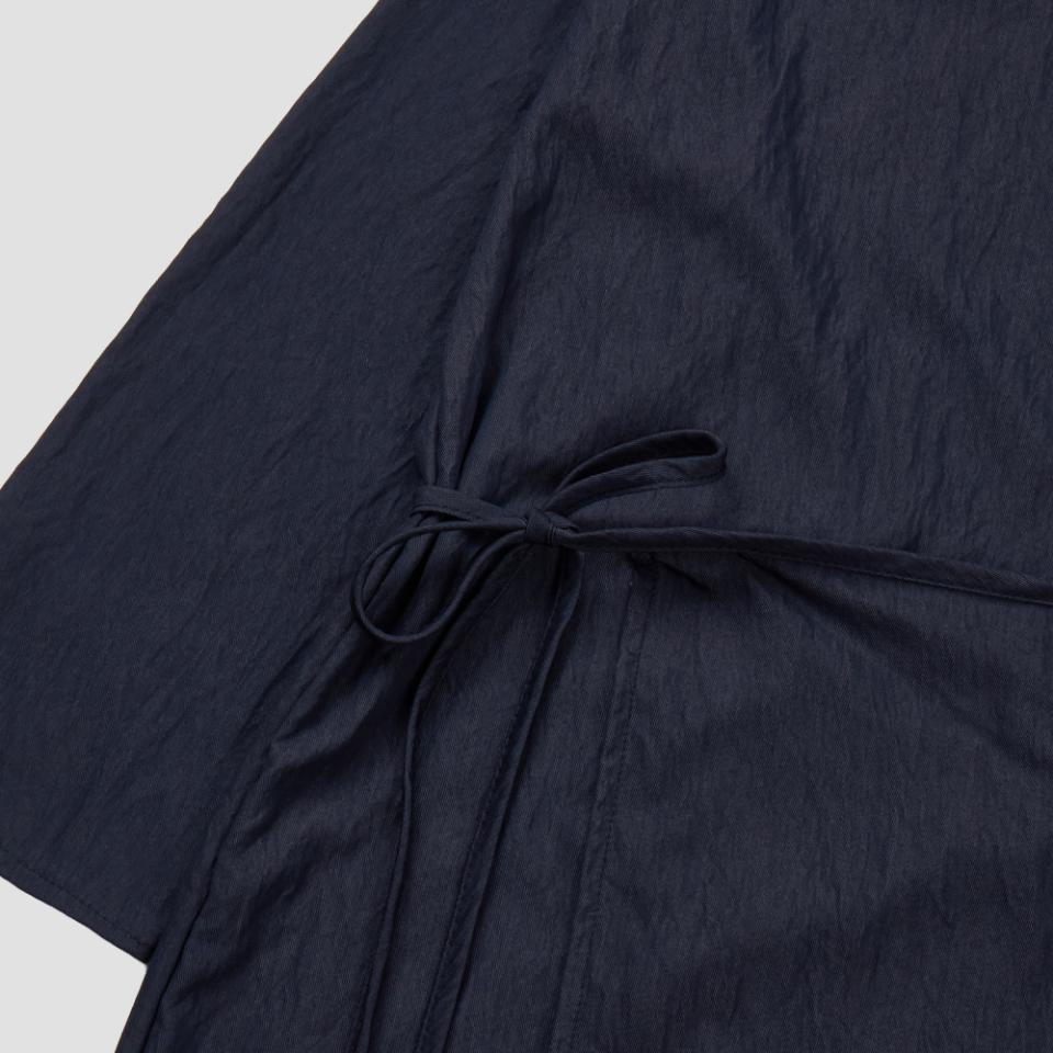 여유 있는 소매와 일자로 떨어지는 기장은 절제된 우아함을 담아내며,