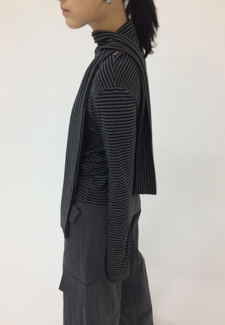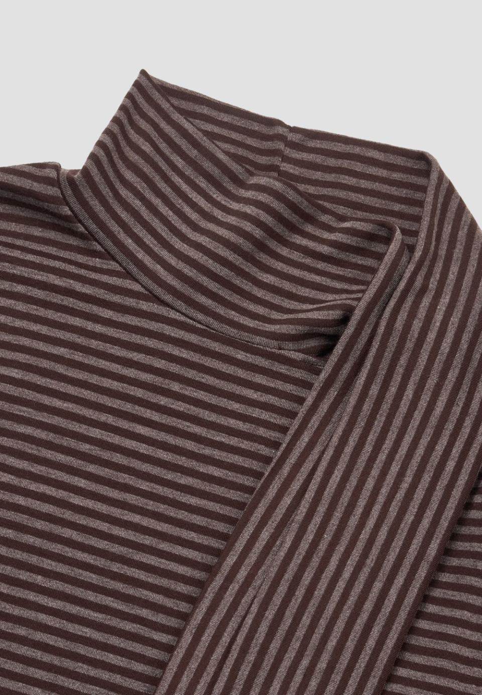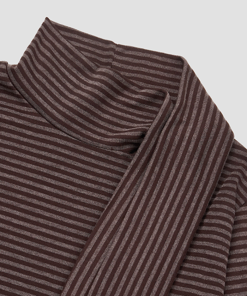 몸에 부드럽게 닿는 저지 소재로 제작되어 유연하게 착용되며, 잔잔한 스트라이프 패턴이 세련된 리듬감을 더해줍니다.