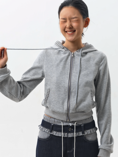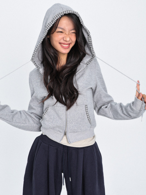 글렌 슬림핏 크롭 후드 집업 (2컬러)
