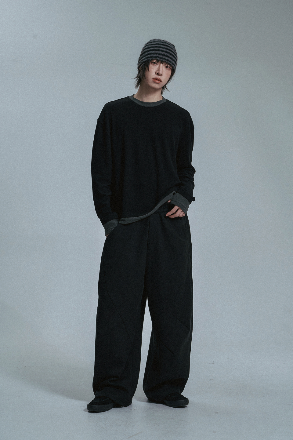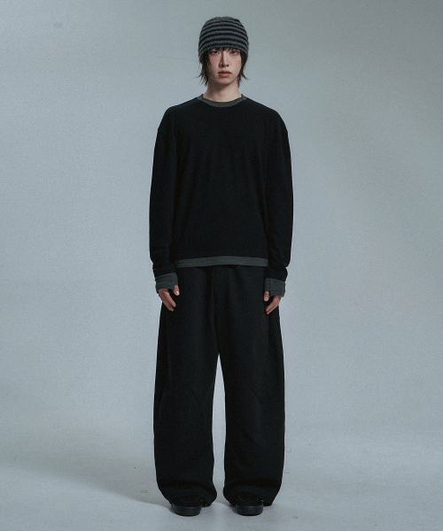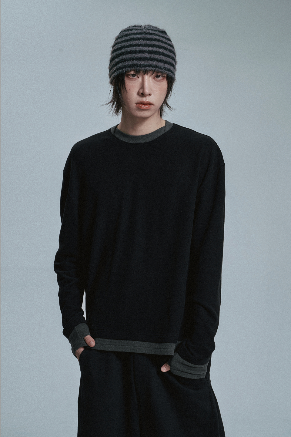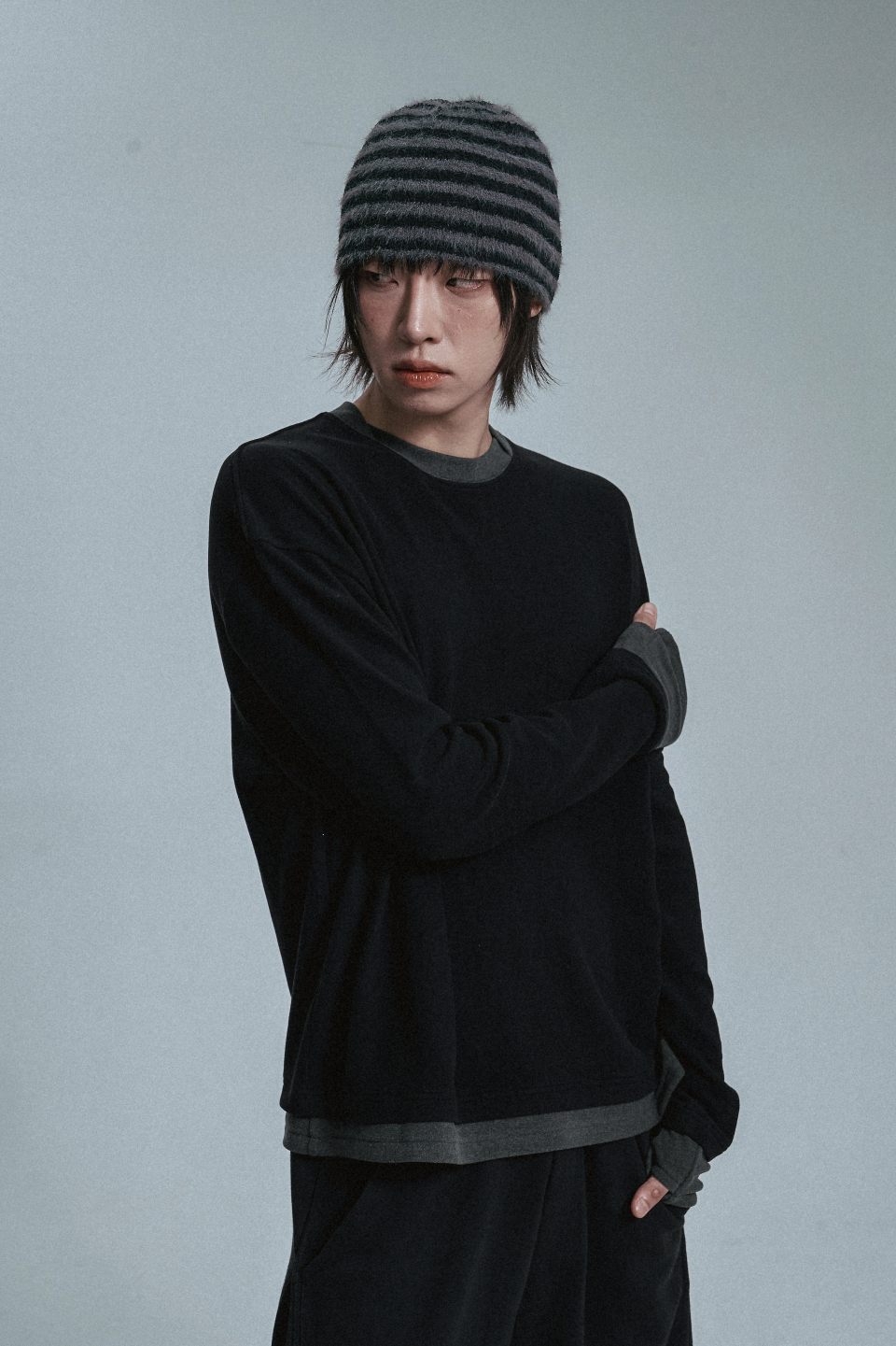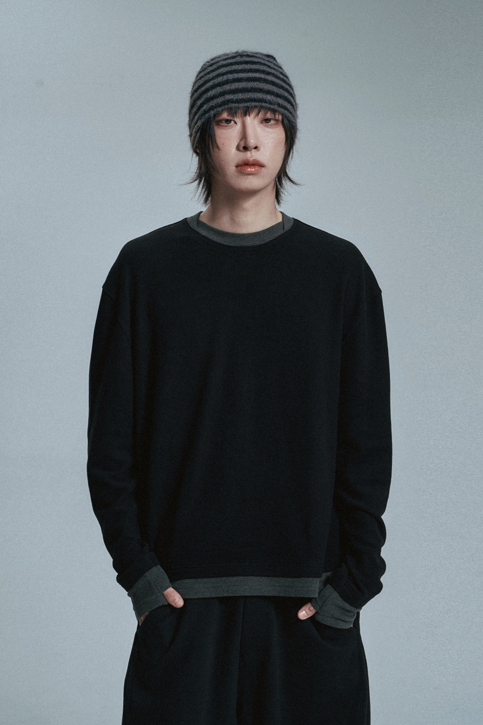풀 집 핑거 홀 스웨트 셔츠 [블랙]