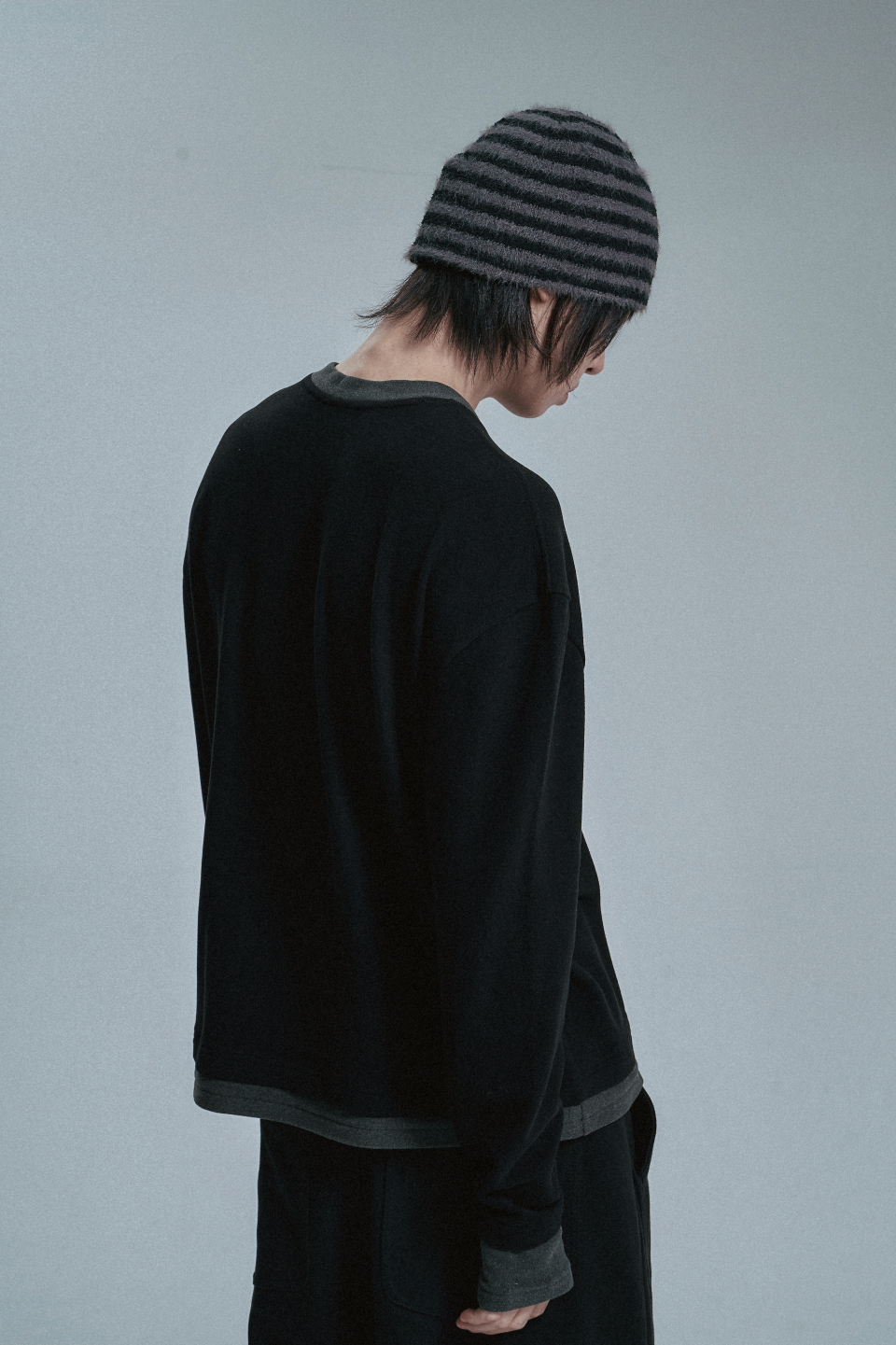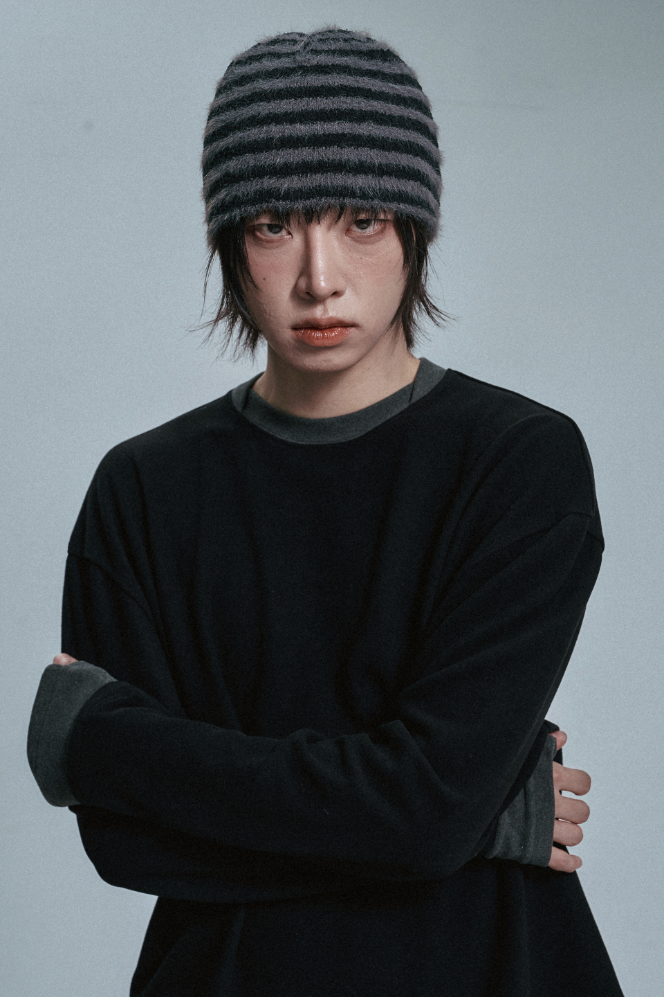 멀티 스트라이프 후드 롱슬리브 [차콜블랙]