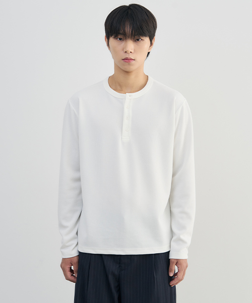 헨리넥 와플 롱슬리브 티셔츠 [WHITE]