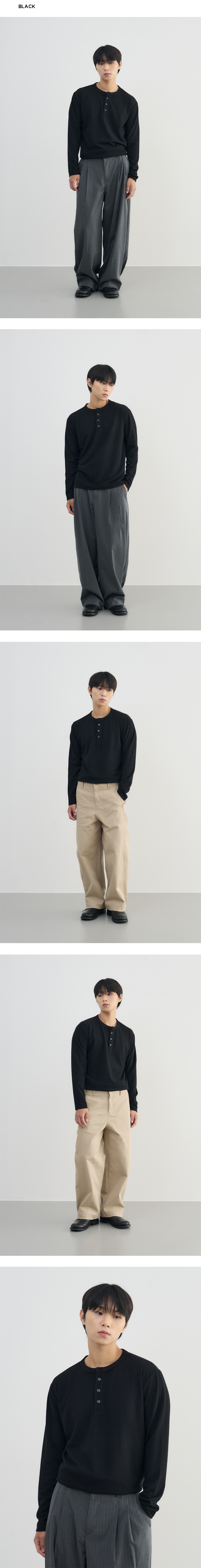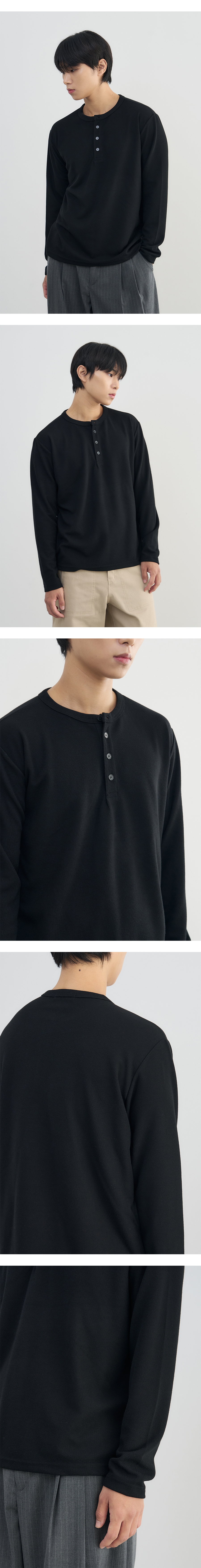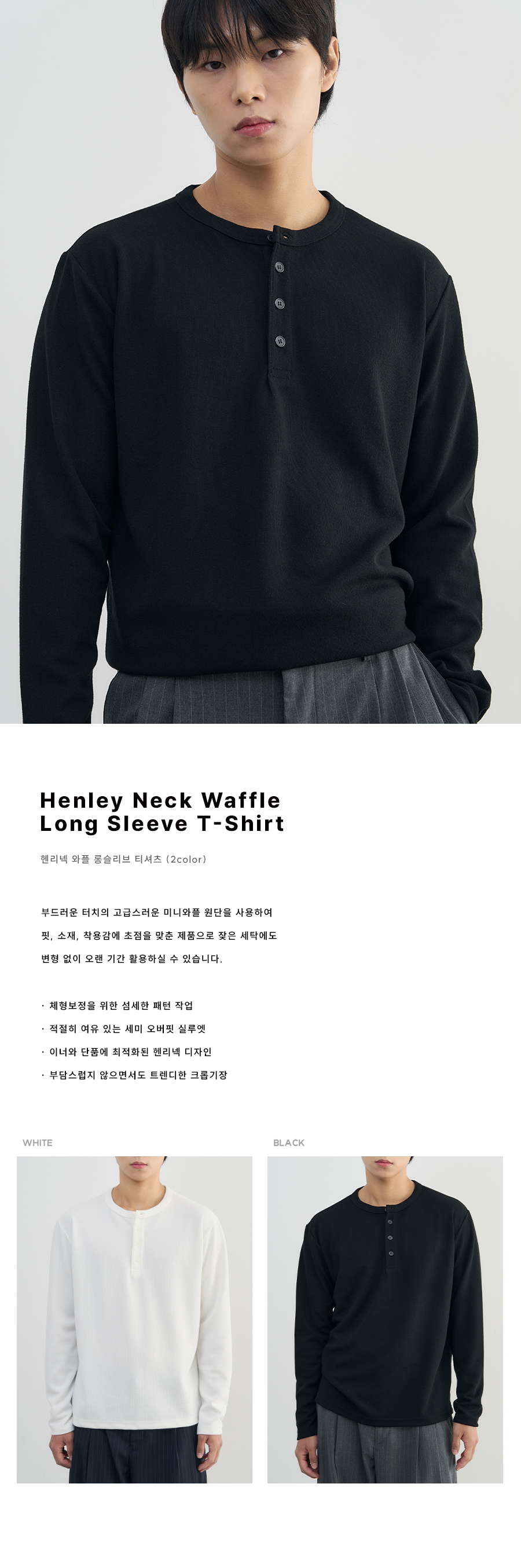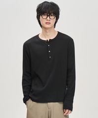 헨리넥 와플 롱슬리브 티셔츠 [BLACK]