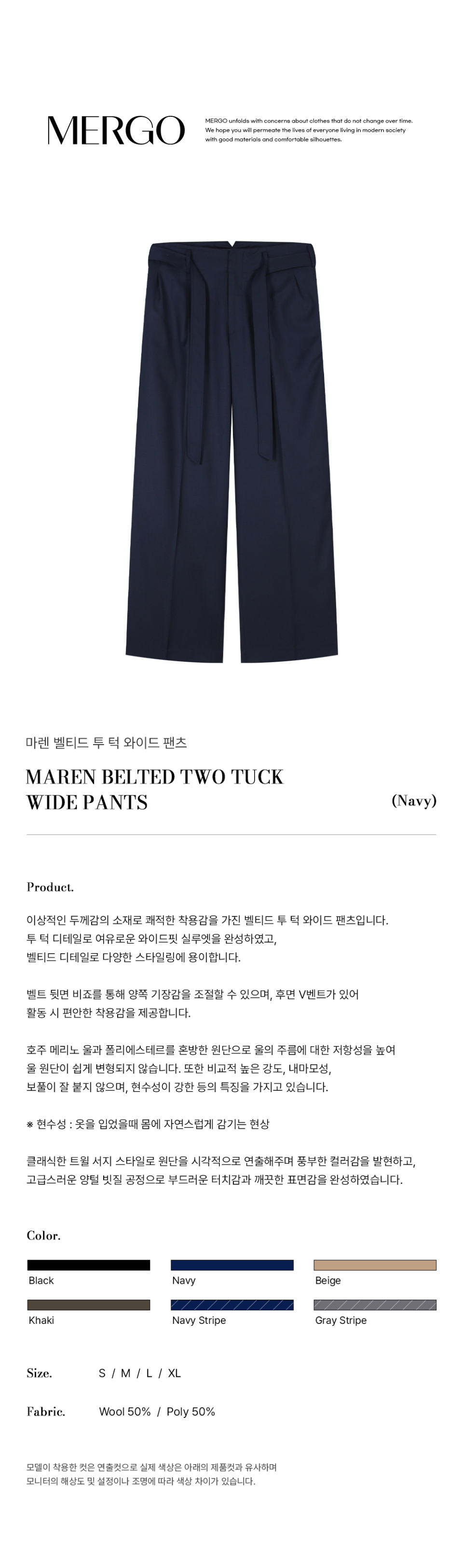 마렌 벨티드 투턱 와이드 팬츠 [네이비]