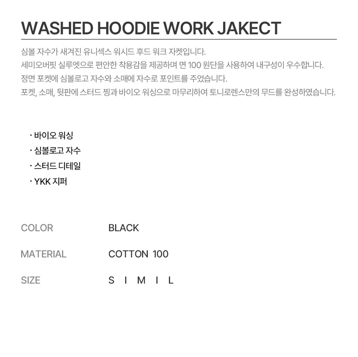 워시드 후디 워크자켓 블랙