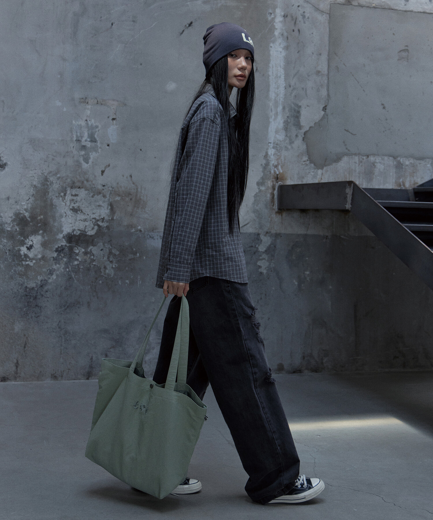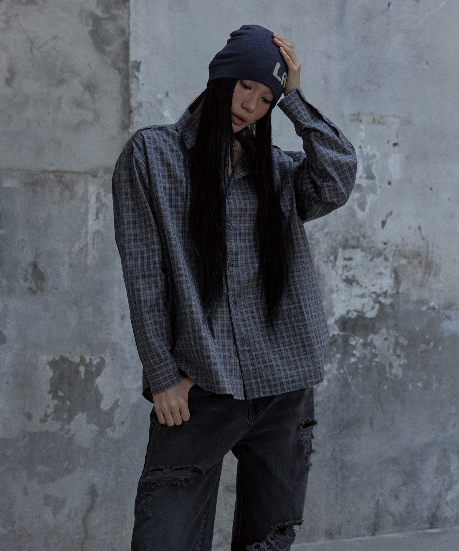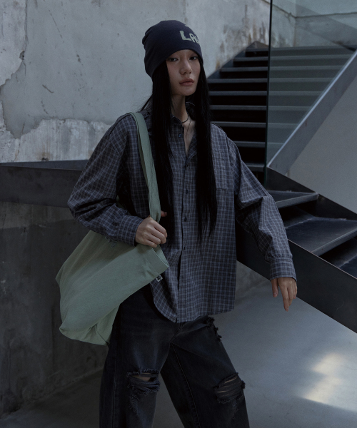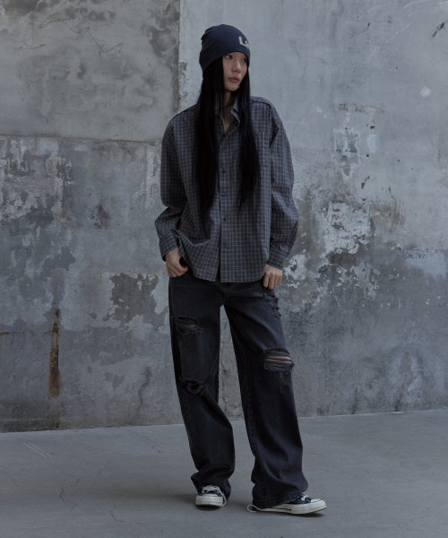 컷 오프 체크셔츠 그레이