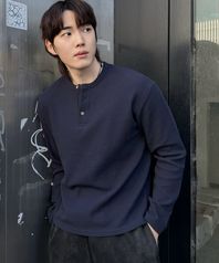 와플 헨리넥 크롭 티셔츠 [네이비]