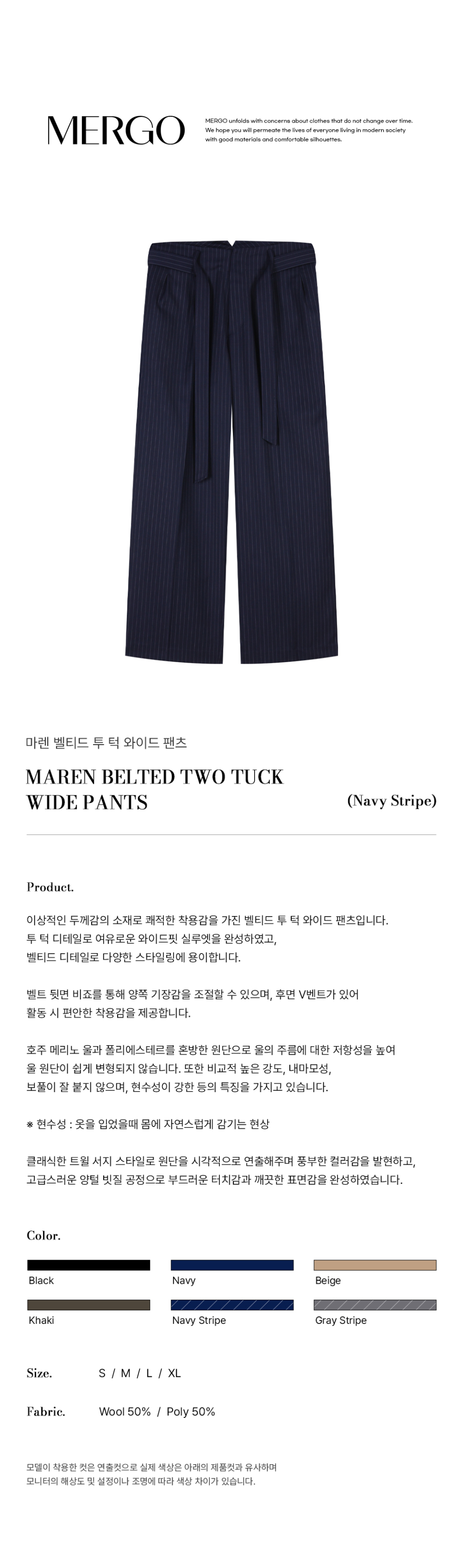 마렌 벨티드 투턱 와이드 팬츠 [네이비 스트라이프]