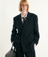 Pin Stripe Double Breasted Jacket (Navy) TNJA5F102N2