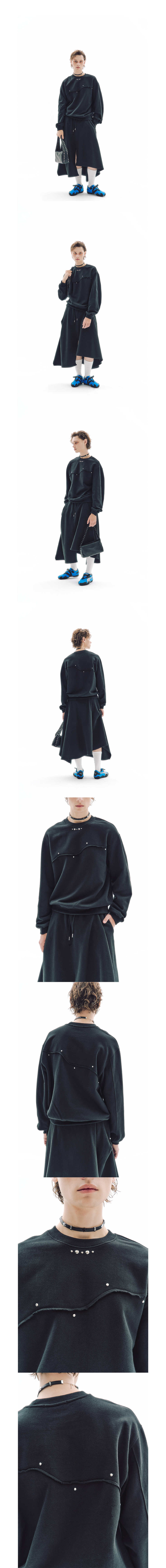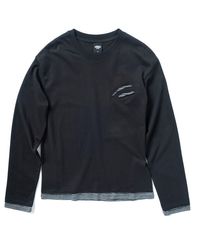 스크레치 레이어드 긴팔 티셔츠 - 블랙