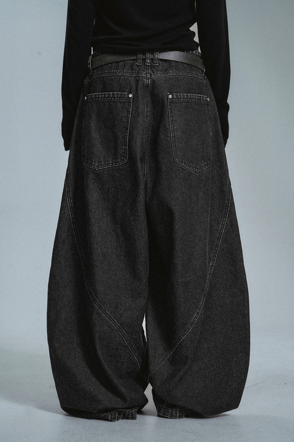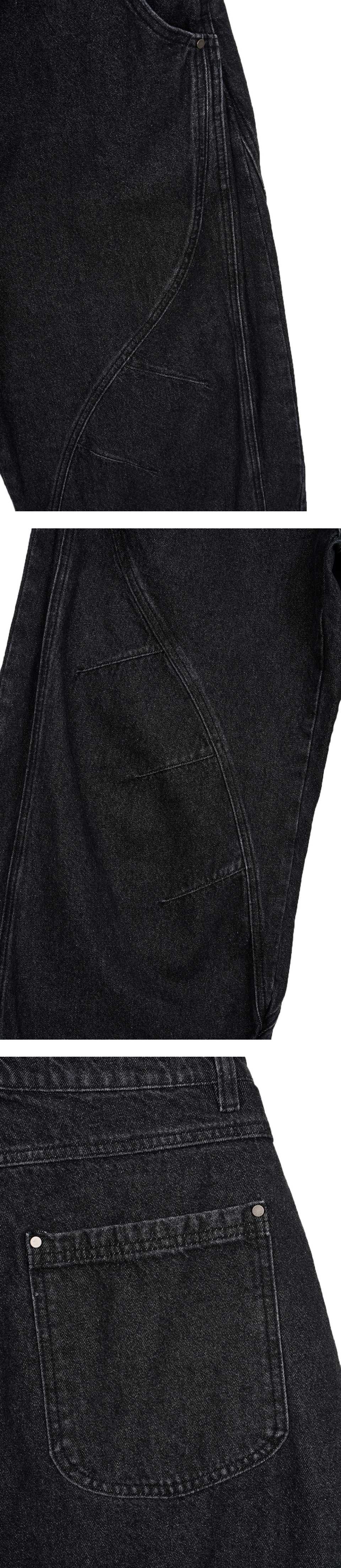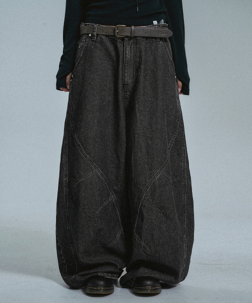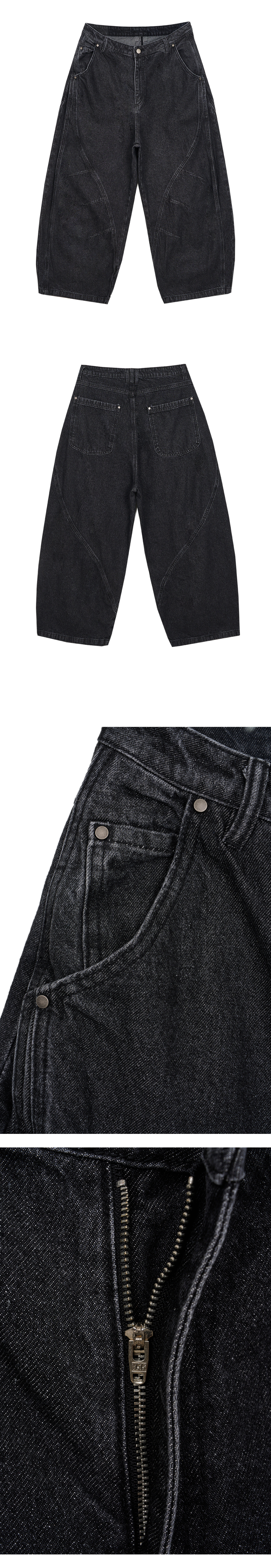 커브드 라인 다트 벌룬 데님팬츠 - 블랙