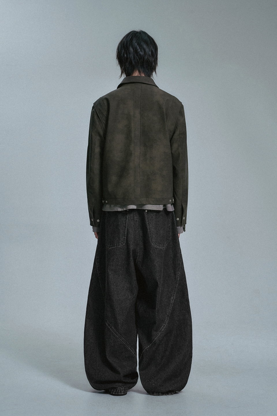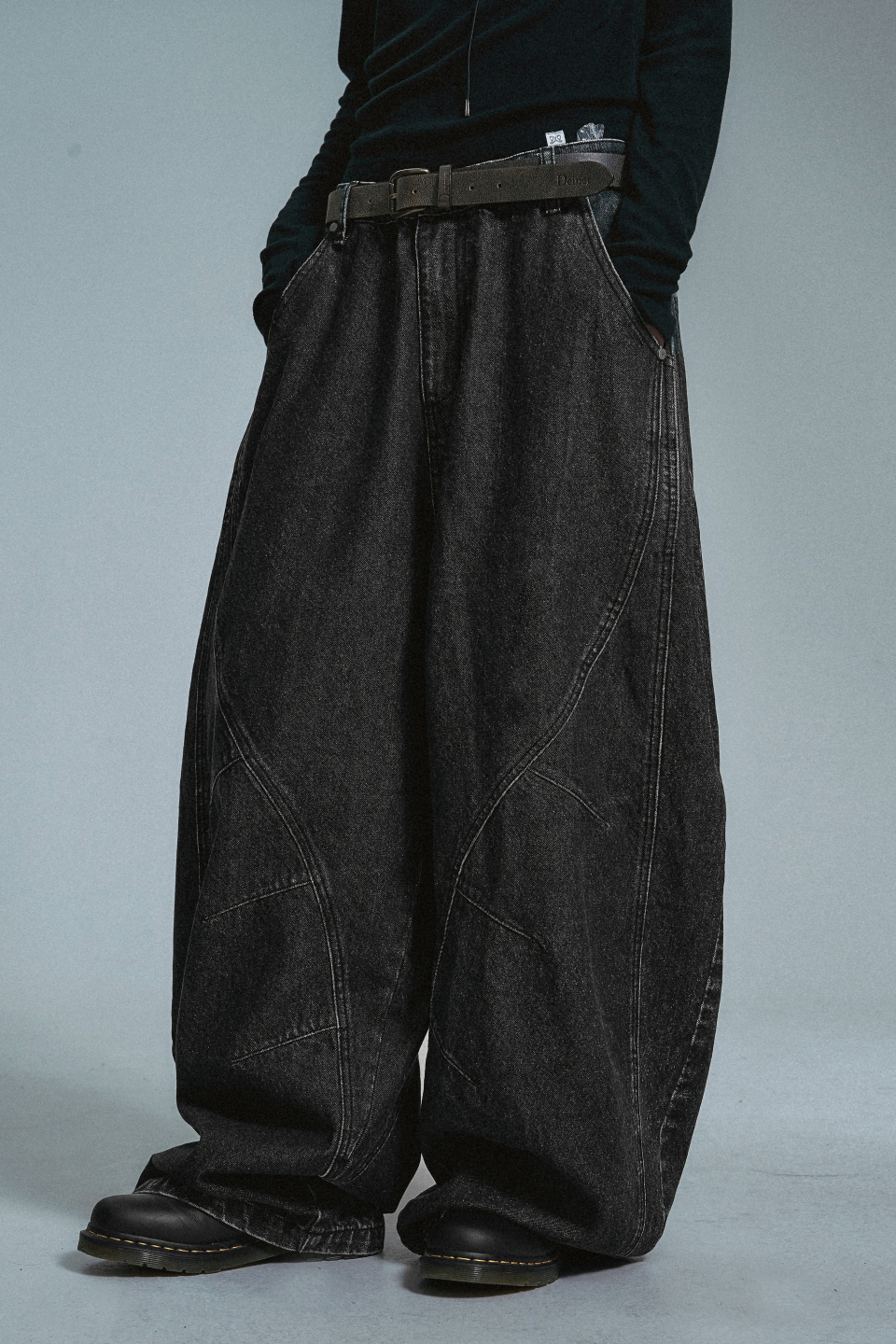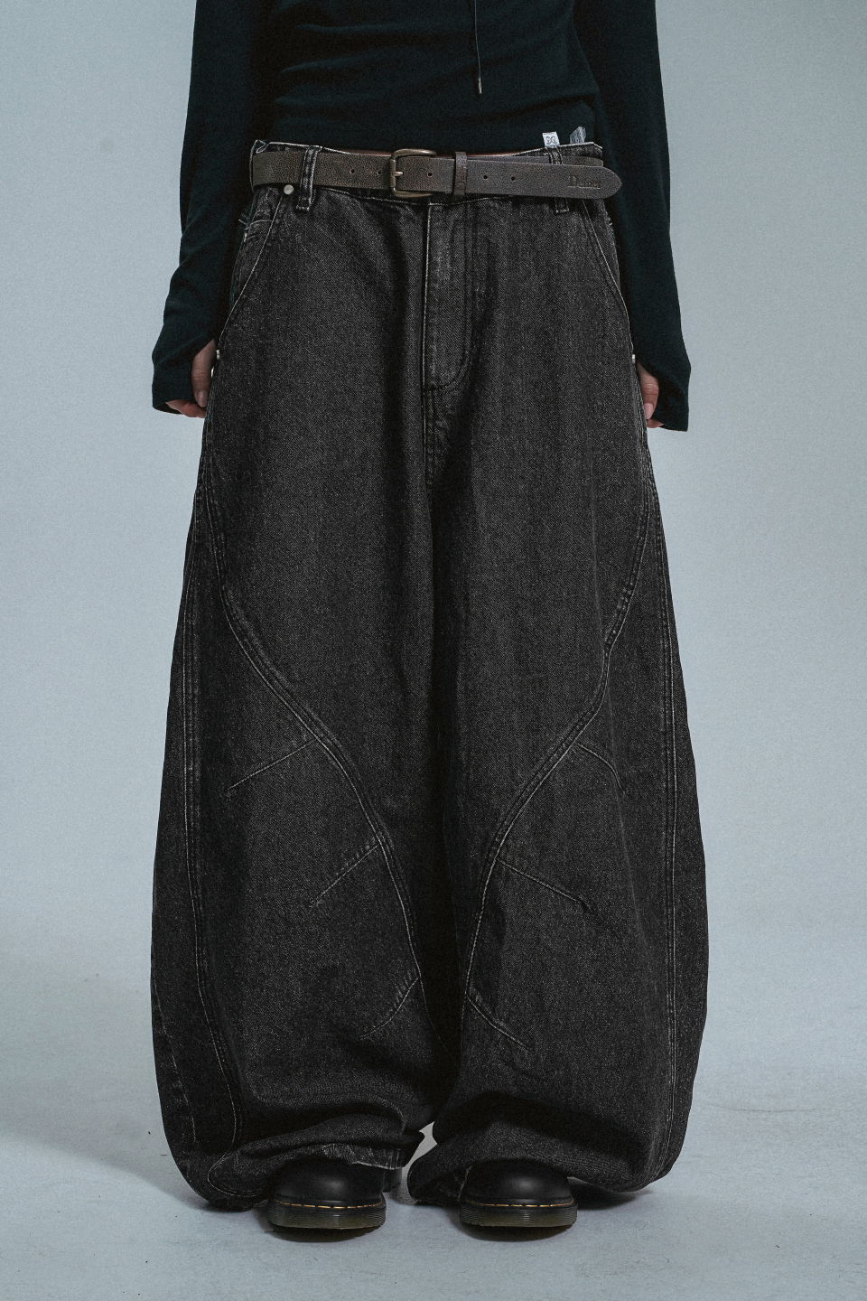 커브드 라인 다트 벌룬 데님팬츠 - 블랙