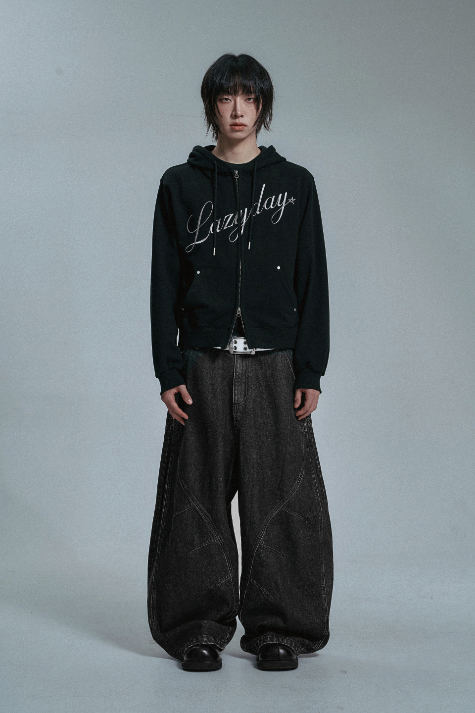 러기드 데미지 워싱 후드집업 [차콜]