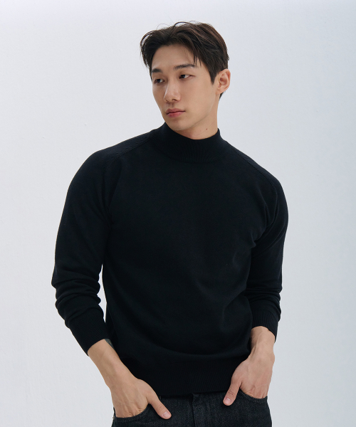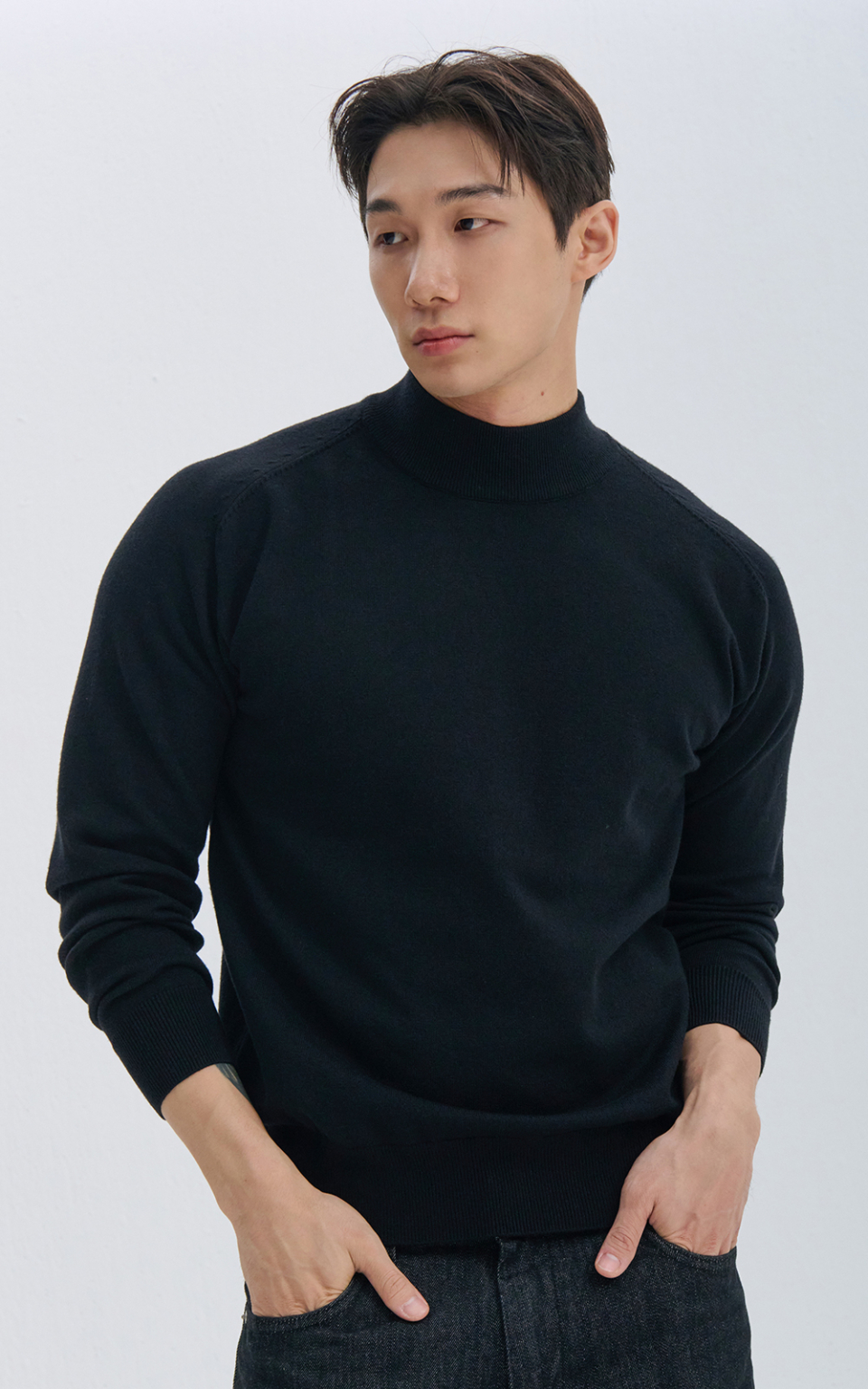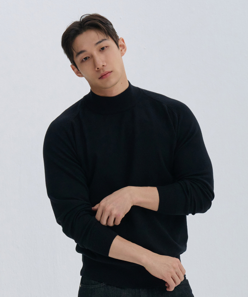 시그니처 모크넥 머슬핏 긴팔 티셔츠