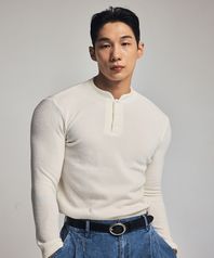 케이블 니트 헨리넥 머슬핏티셔츠 아이보리
