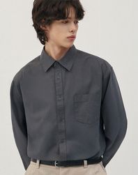오버핏 워시드 코튼 셔츠 [차콜]